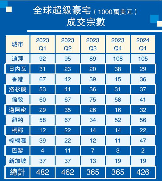 首季超級(jí)豪宅銷售額錄得80億美元,反彈至去年第二季度以來(lái)的最高水平。香港以9.88億美元(約77.3億港元)的成績(jī),位列榜單第四,排在迪拜(17.36億美元)、紐約(12.18億美元)、美國(guó)棕櫚灘(10.66億美元)之後。