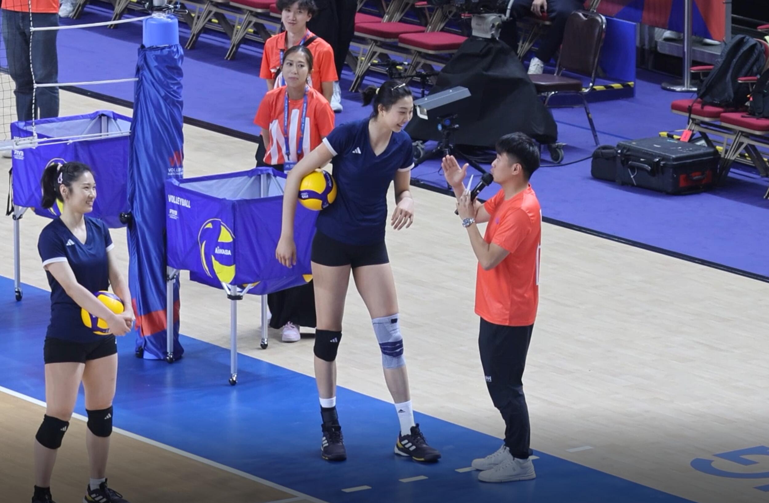 在傳球環(huán)節(jié)上,小蘋果大讚小球員非??蓯垡埠芘?,真的非常棒,之後還與他們互動擊掌。在進行扣球還節(jié),主持人向袁心玥說,小球迷想中國女排扣球重一點,小蘋果隨即拍球落地,作狀大力扣球,相當搞笑!(木子 志誠 李承泰)
