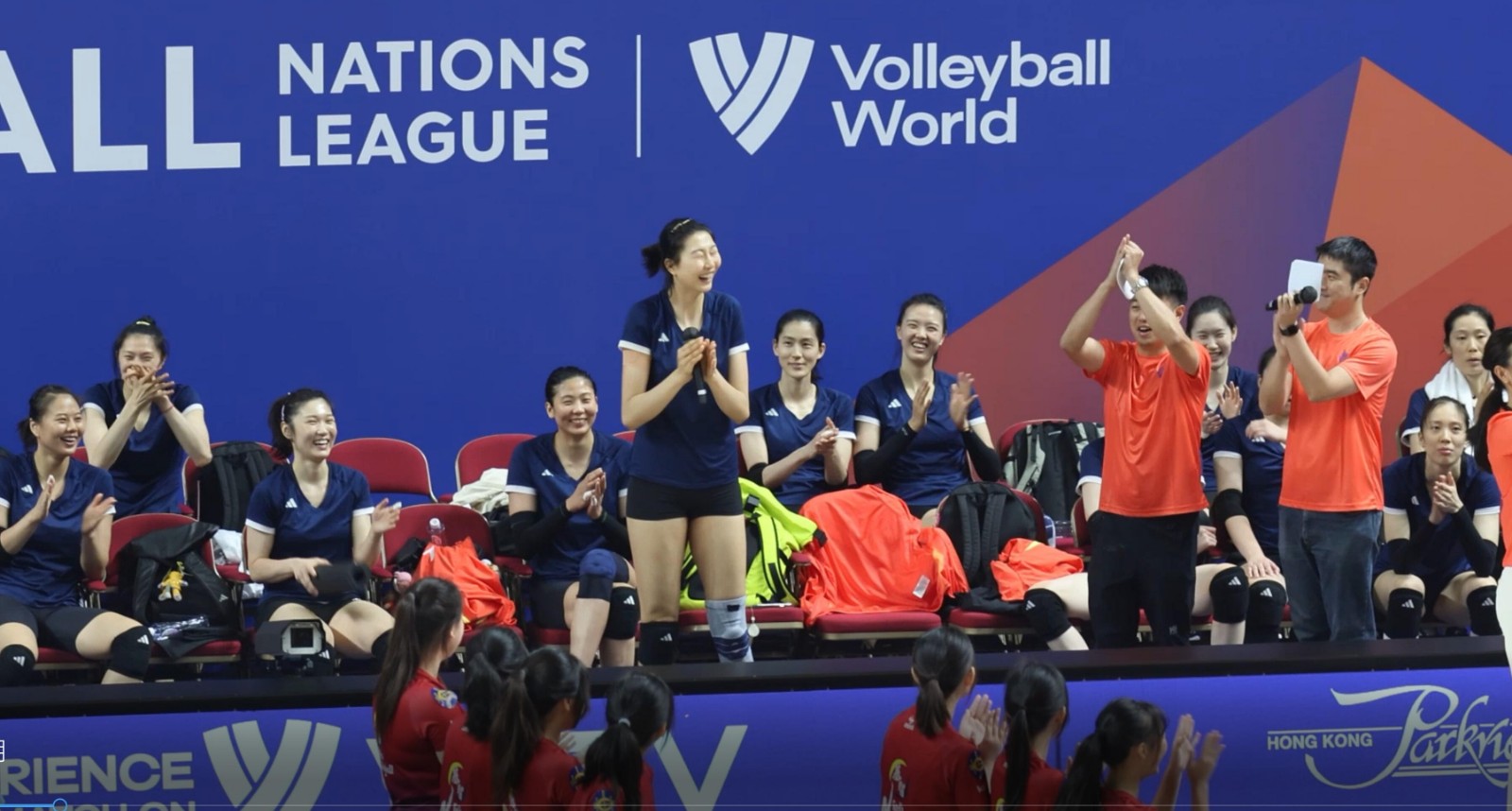 周六(8日)在香港體育館舉行的「中國女排全接觸」活動圓滿結束,中國女排隊員與現(xiàn)場球迷打成一片。在交流活動展開前,中國女排隊員逐一自我介紹出場,隊長袁心玥(小蘋果)打頭陣,她用廣東話向大家打招呼,「我剛學了一句!大家好,我係袁心玥」,惹來現(xiàn)場一片掌聲!