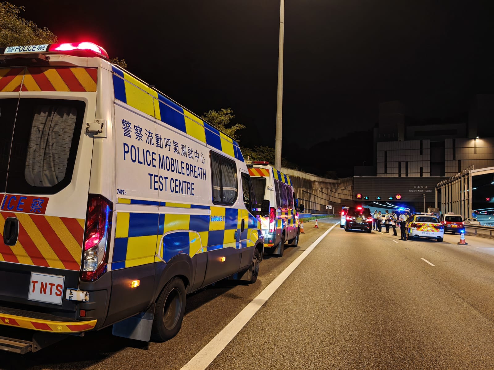 警方新界南總區(qū)交通部執(zhí)行及管制組人員於昨日(9日)及今日(10日)凌晨在區(qū)內進行打擊毒後及酒後駕駛行動,在各區(qū)主要幹道設置路障,截查可疑車輛,並向駕駛人士進行酒精呼氣測試,以打擊端午節(jié)假期的毒駕和醉駕等罪行。