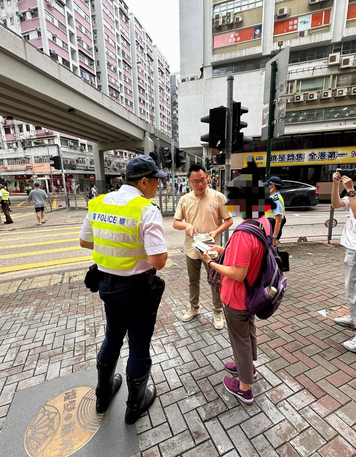 九龍城警區(qū)連同西九龍交通總部邀請九龍城區(qū)林德成議員及其義工隊,今日(11日)在區(qū)內(nèi)多個交通黑點教育宣傳涉及單車及行人違例事項,主要涉及路上使用電動可移動工具,行人路上踏單車、無遵從交通燈號及不小心騎單車等。行人主要涉及不依行人過路燈橫過馬路,在交通燈號控制過路處兩旁15米範(fàn)圍內(nèi)過馬路而不使用交通燈號控制過路處等,期間人員共發(fā)出300張宣傳單張。