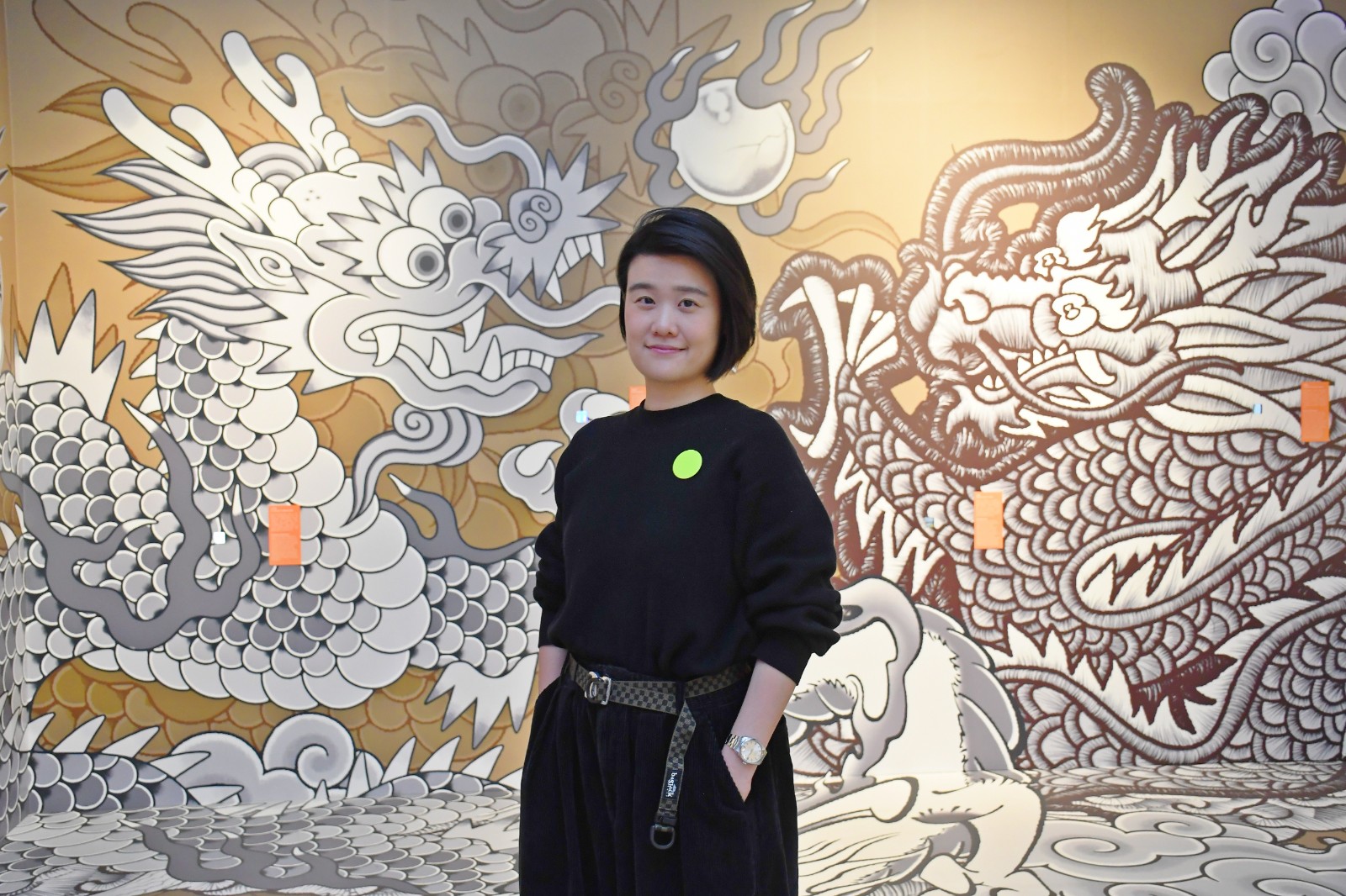 朱天韻曾開設(shè)藝?yán)?,擁有豐富策展經(jīng)驗,商場策展無疑是一個新領(lǐng)域,為何選擇在商場作策展人?她笑著與記者分享自己的策展故事。「本土尋龍記」的壓軸展品由大坑舞火龍總指揮張國豪(豪哥)與朱天韻策展團(tuán)隊一起設(shè)計,以長達(dá)15米、插有超過6000支「香」的夜光火龍形式在黑房中亮相。她回憶,火龍由豪哥和其兄弟班一起運(yùn)送到商場,在升降機(jī)內(nèi)「打龍餅」,如同節(jié)日時舞火龍一般,來到展場才合作討論展示形態(tài),成為展覽量身訂造的展品。