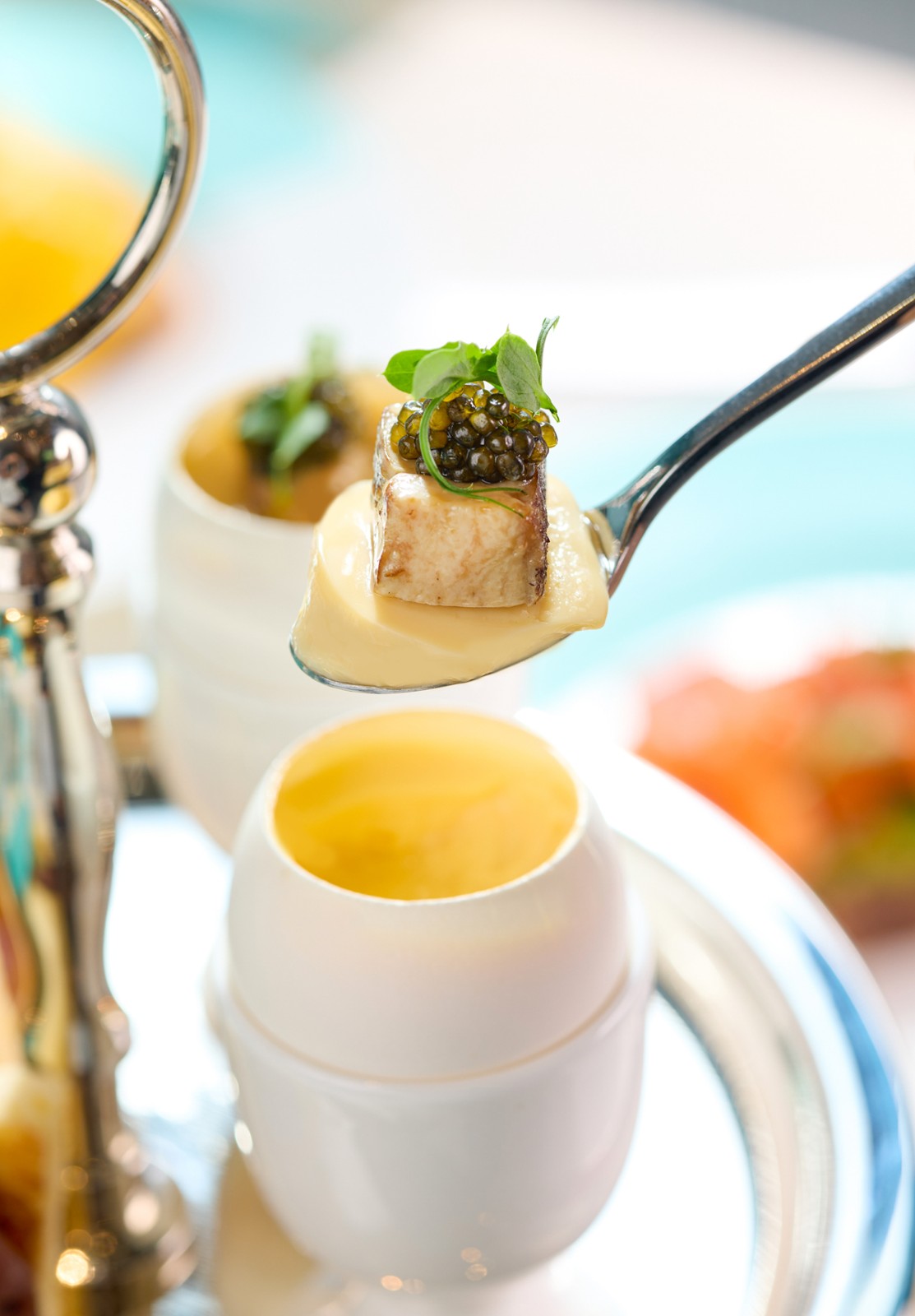 早午餐起源於發(fā)展中的美國(guó)大城市,特別是在紐約和芝加哥等都市。20世紀(jì)初,隨著城市生活節(jié)奏的加快,人們周末起床較晚,於是早午餐成為了一種既能享用豐盛早餐又能充當(dāng)午餐的理想選擇。「Breakfast at Tiffany’S」不懂為食客提供精緻早午餐,還通過(guò)精心設(shè)計(jì)的全新銀器餐具和環(huán)境,營(yíng)造出別致的用餐氛圍,讓食客感受紐約都市的魅力與,體驗(yàn)身處繁忙都市中心的寧?kù)o與美好。兩層華麗層架載滿一系列由主廚精心準(zhǔn)備的經(jīng)典美點(diǎn):包括魚子醬、鵝肝、燻肉、自家製穀麥片和豐富的水果,為食客帶來(lái)味覺上的享受。