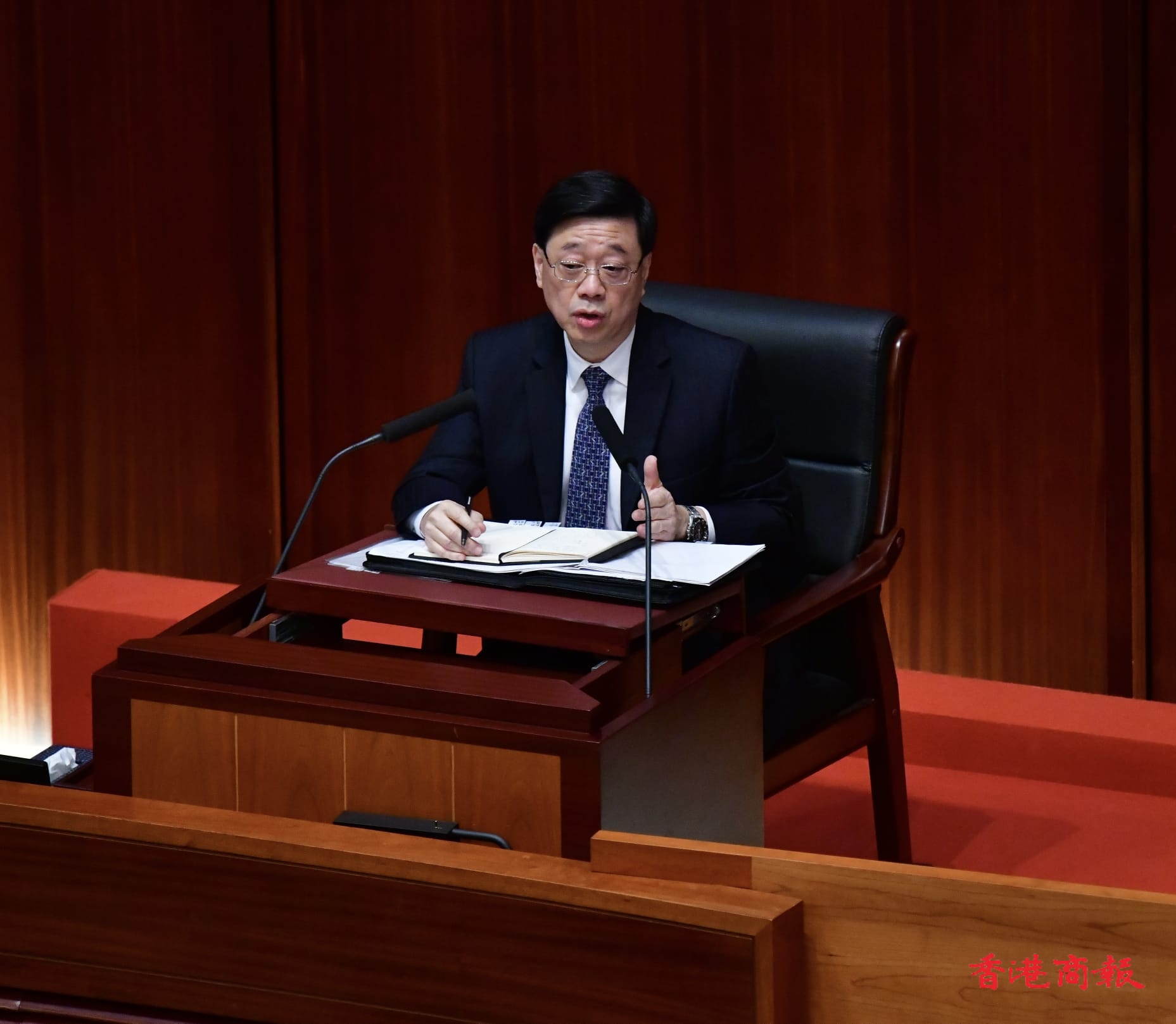 李家超提到,香港落實愛國者治港原則後,立法會具有憲制地位,要展現(xiàn)愛國者治港的特別優(yōu)越價值,議員既高質又高效率。他說歡迎不同意見和重視交流,亦經(jīng)常留意立法會的辯論,認為展現(xiàn)愛國者治港優(yōu)越價值,本港要不似西方議會政治掛帥對立,而是共同務實為港人做成事。