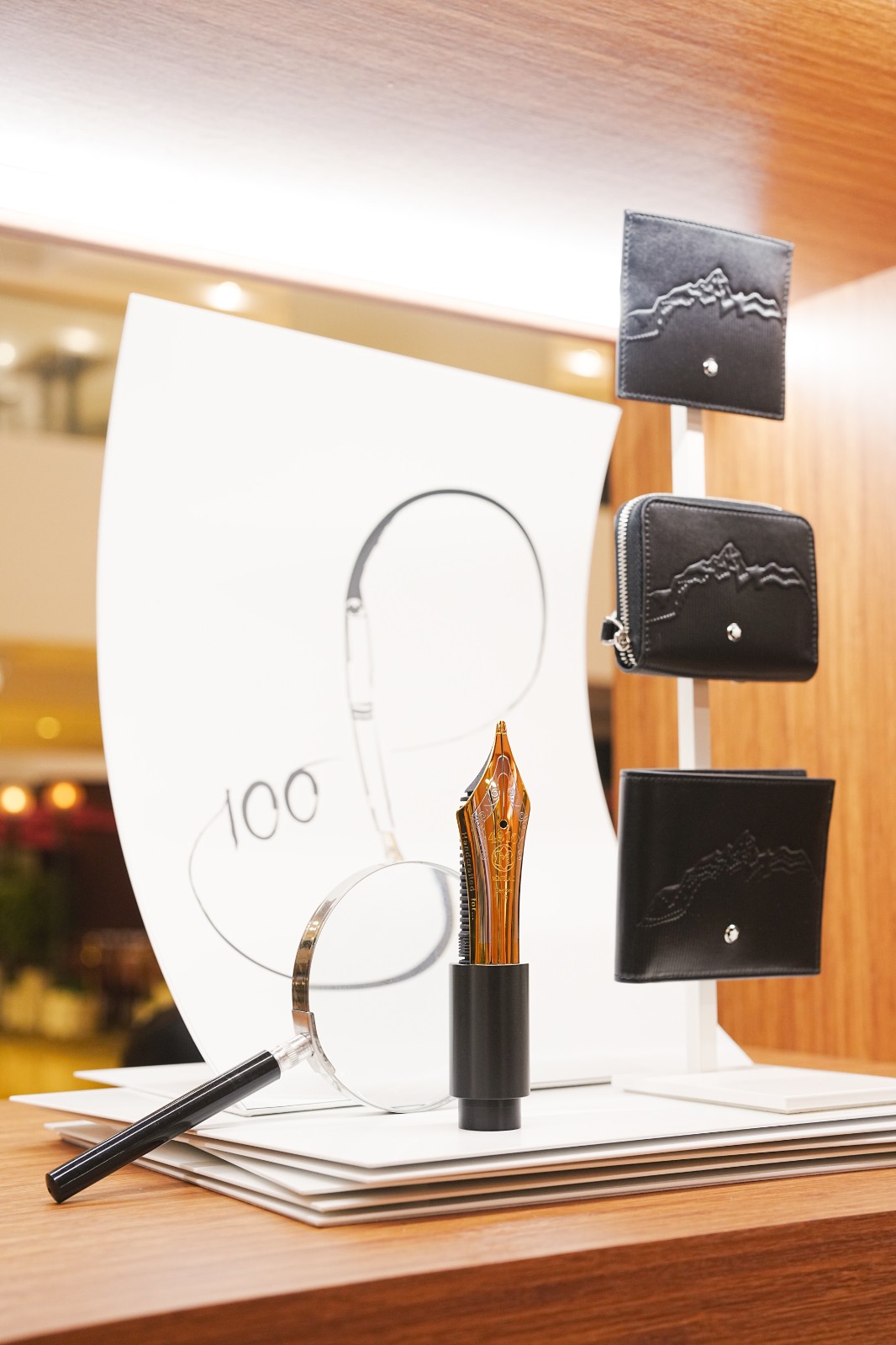 期間限定店重現(xiàn)短片中出現(xiàn)的雪山木屋,內(nèi)部裝飾採用中世紀(jì)現(xiàn)代家具,與木質(zhì)主調(diào)相得益彰,營造精緻而舒適的氛圍。設(shè)有特色圖書區(qū)、咖啡店及書寫枱,讓賓客一邊享受咖啡,一邊沉浸於書本世界。木屋設(shè)計(jì)強(qiáng)調(diào)透明度,與周圍環(huán)境無縫融合,吸引參與者探索。店內(nèi)擺放一座高近 3 米的巨型 Meisterstück 模型,以紀(jì)念書寫工具誕生百周年。顧客可探索The Origin 系列、皮革系列、百周年別注系列及 Star Legacy Nicolas Rieussec 計(jì)時(shí)腕表大班系列 100 周年限量版等作品。