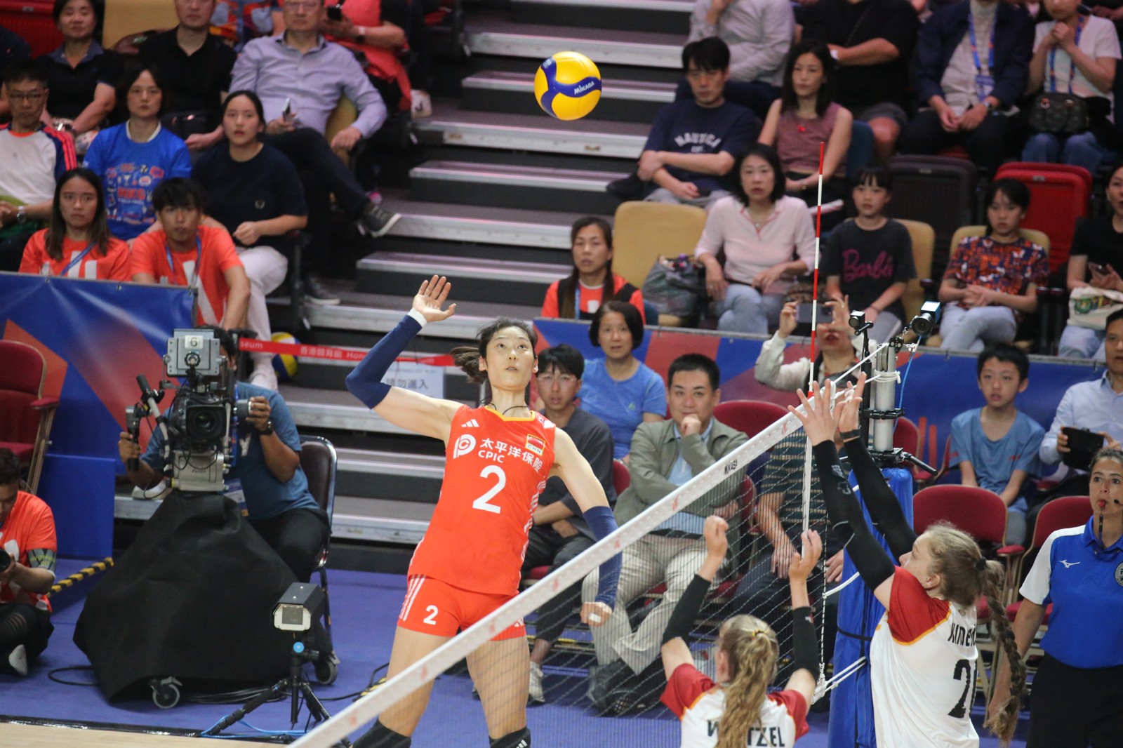 「中國人壽(海外)FIVB世界女排聯(lián)賽香港2024」周五(14日)晚於香港體育館進行第4日賽事,晚上迎來重頭戲,由中國女排主場迎鬥德國。最終中國女排以3比0輕勝德國隊,3局比分分別是25比19、25比17及25比18。繼首戰(zhàn)以3比0擊敗保加利亞後,中國女排於香港站連贏兩場。