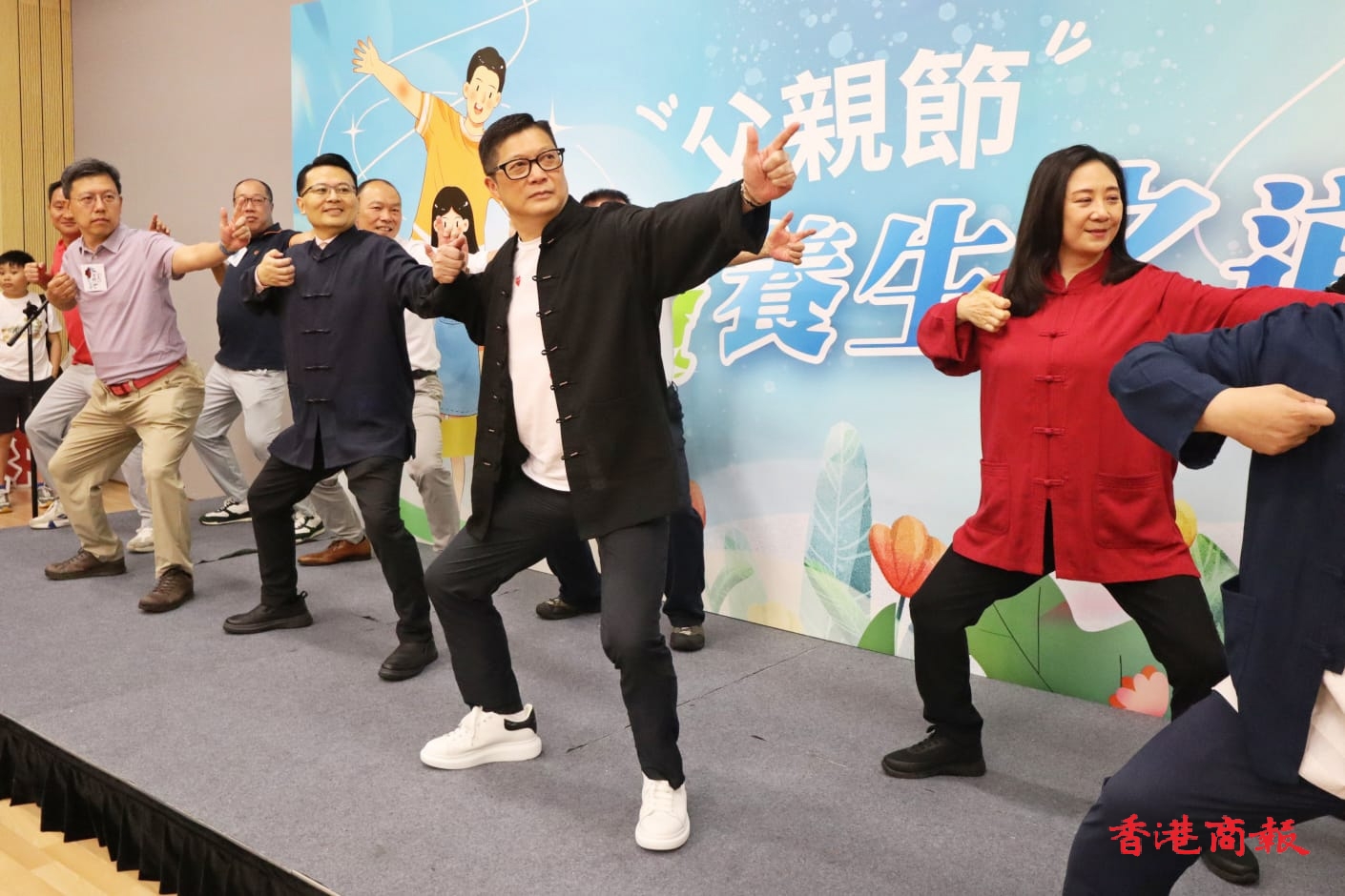 保安局局長鄧炳強今日(16日)出席民建聯(lián)舉辦的「父親節(jié)—爸爸養(yǎng)生之道」活動,在選舉委員會界別立法會議員陳永光帶領下體驗易筋八段錦,約有200至300位市民參與其中。