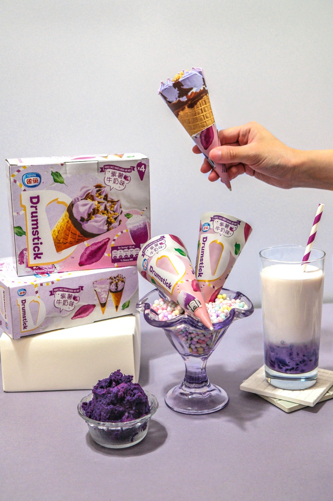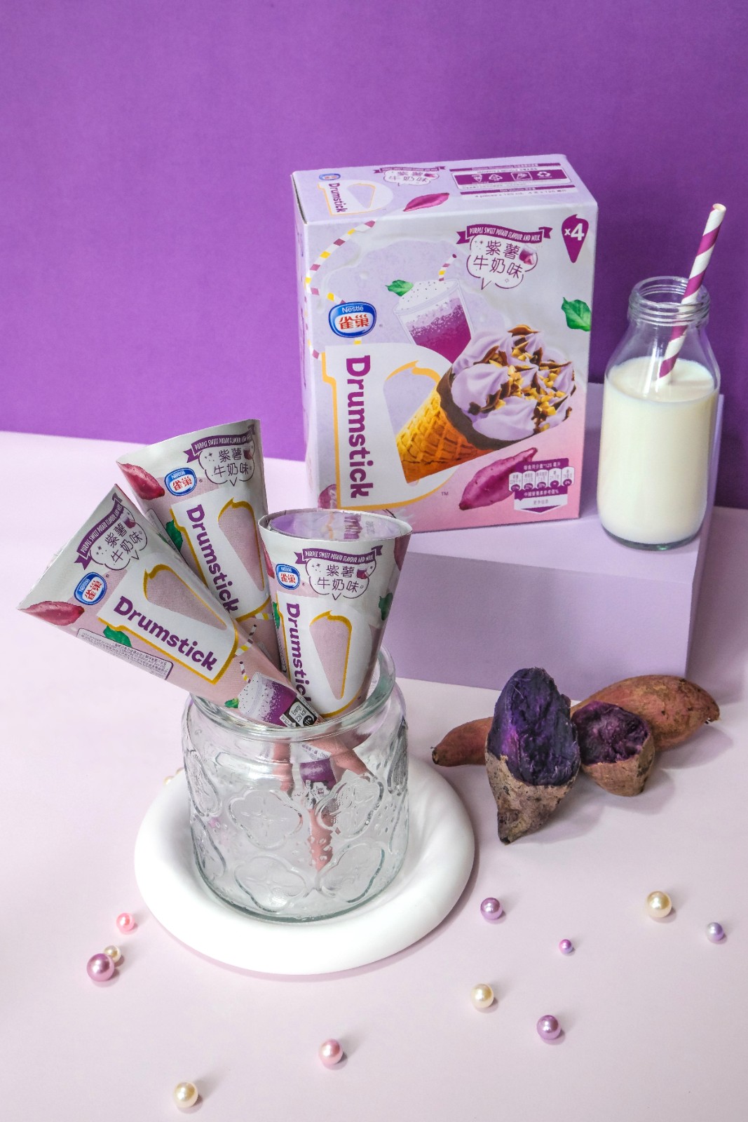 清香軟糯的紫薯在各種甜品、小食中作為餡料入饌,即可成為天然色素,也能提升香氣及味道層次。雀巢DRUMSTICK甜筒推出全新限定紫薯牛奶味,將人氣特飲「紫薯牛奶」化身甜筒,雪糕外觀為夢(mèng)幻粉紫色,是甜而不膩的薯味,與香濃牛奶雪糕交織,並配搭四層有「脆」驚喜,帶來(lái)「薯」不簡(jiǎn)單的滋味體驗(yàn)。