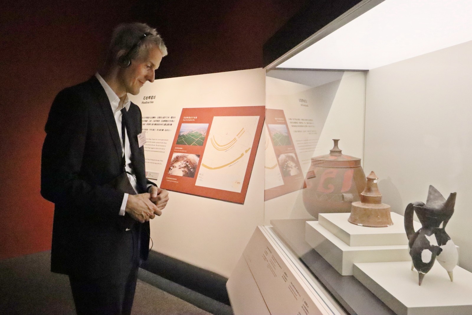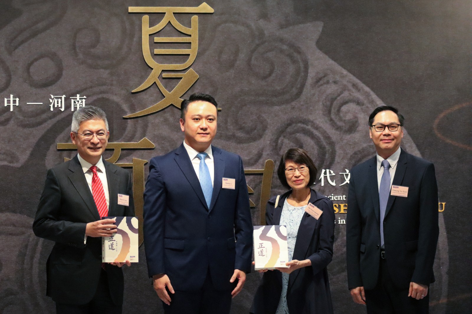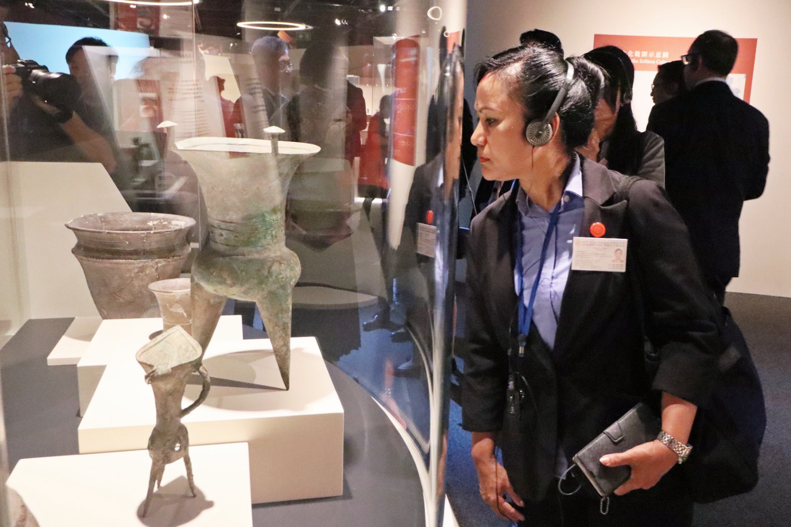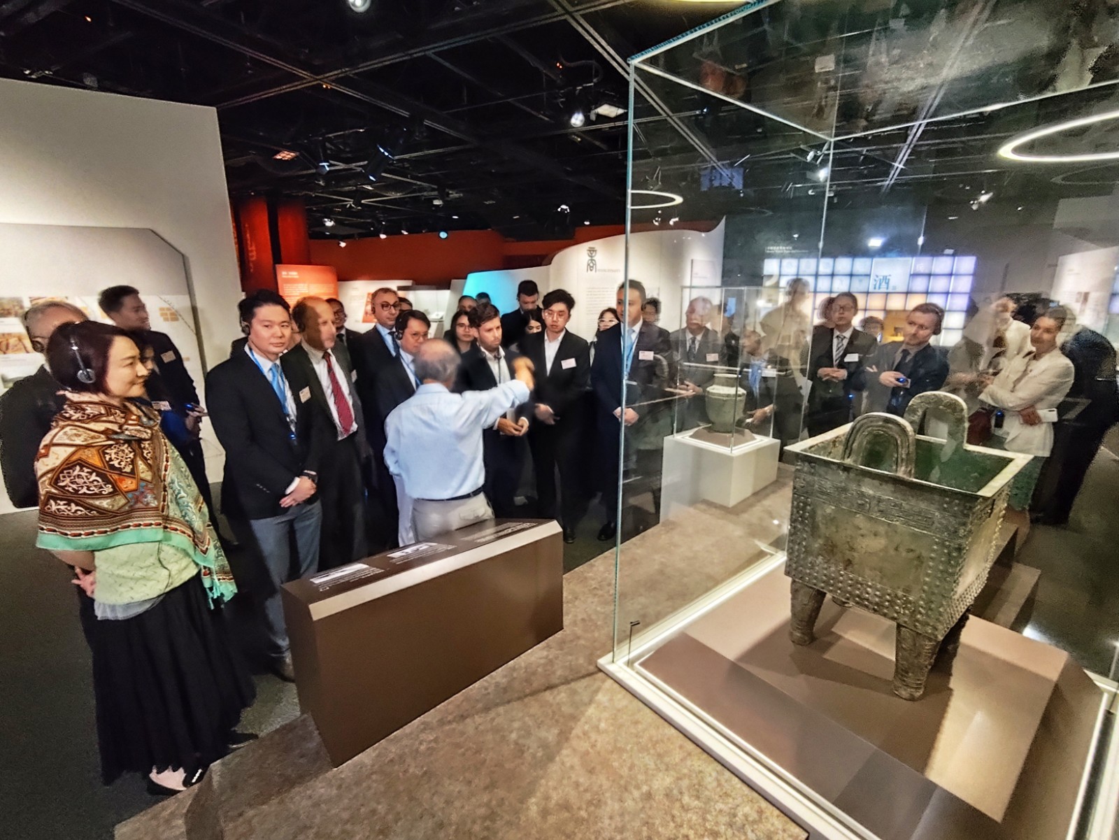 香港歷史博物館現(xiàn)正舉辦題為「天地之中 ─ 河南夏商周三代文明展」專題展覽。民建聯(lián)今日(18日)特設(shè)專場(chǎng),邀請(qǐng)駐港外國(guó)領(lǐng)事及外國(guó)商會(huì)參觀展覽,讓駐港外國(guó)領(lǐng)事及外國(guó)商會(huì)更好認(rèn)識(shí)中國(guó)古代的文明和歷史,以促進(jìn)文化交流,加深彼此了解。專場(chǎng)並邀得文化體育及旅遊局副局長(zhǎng)劉震、香港歷史博物館總館長(zhǎng)張銳森主禮。