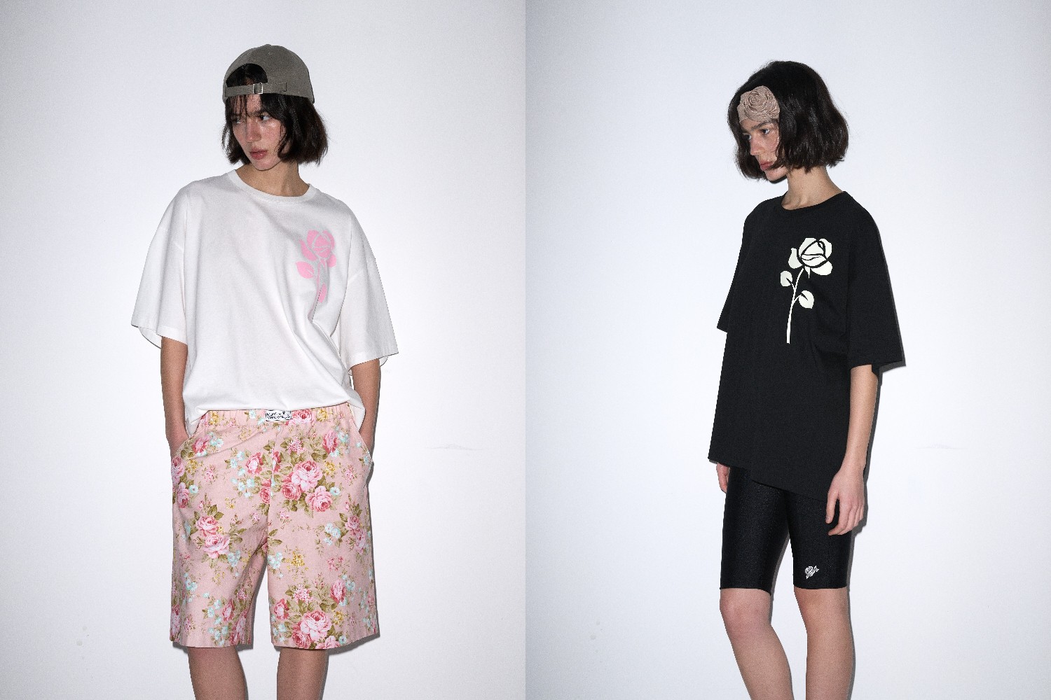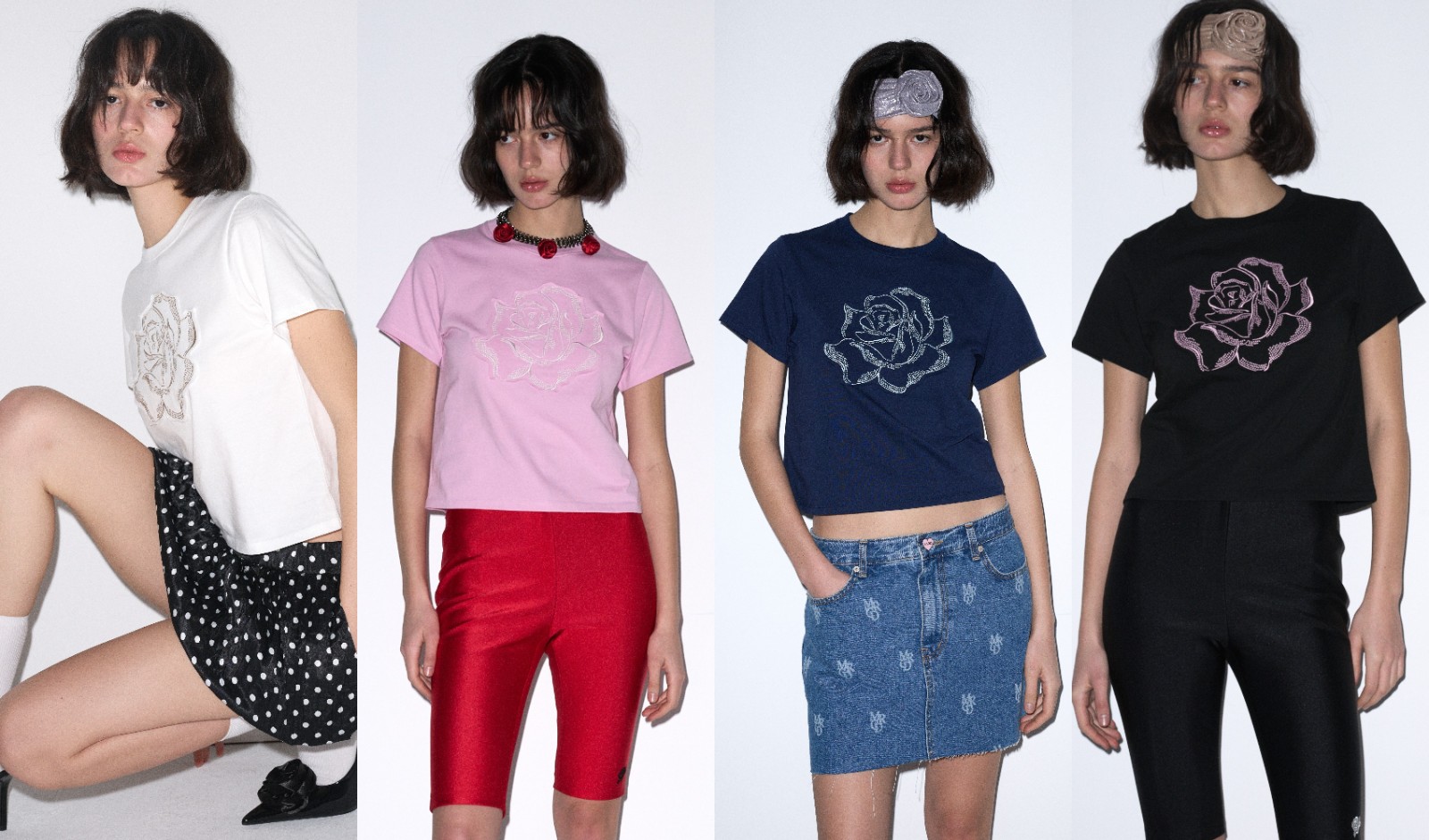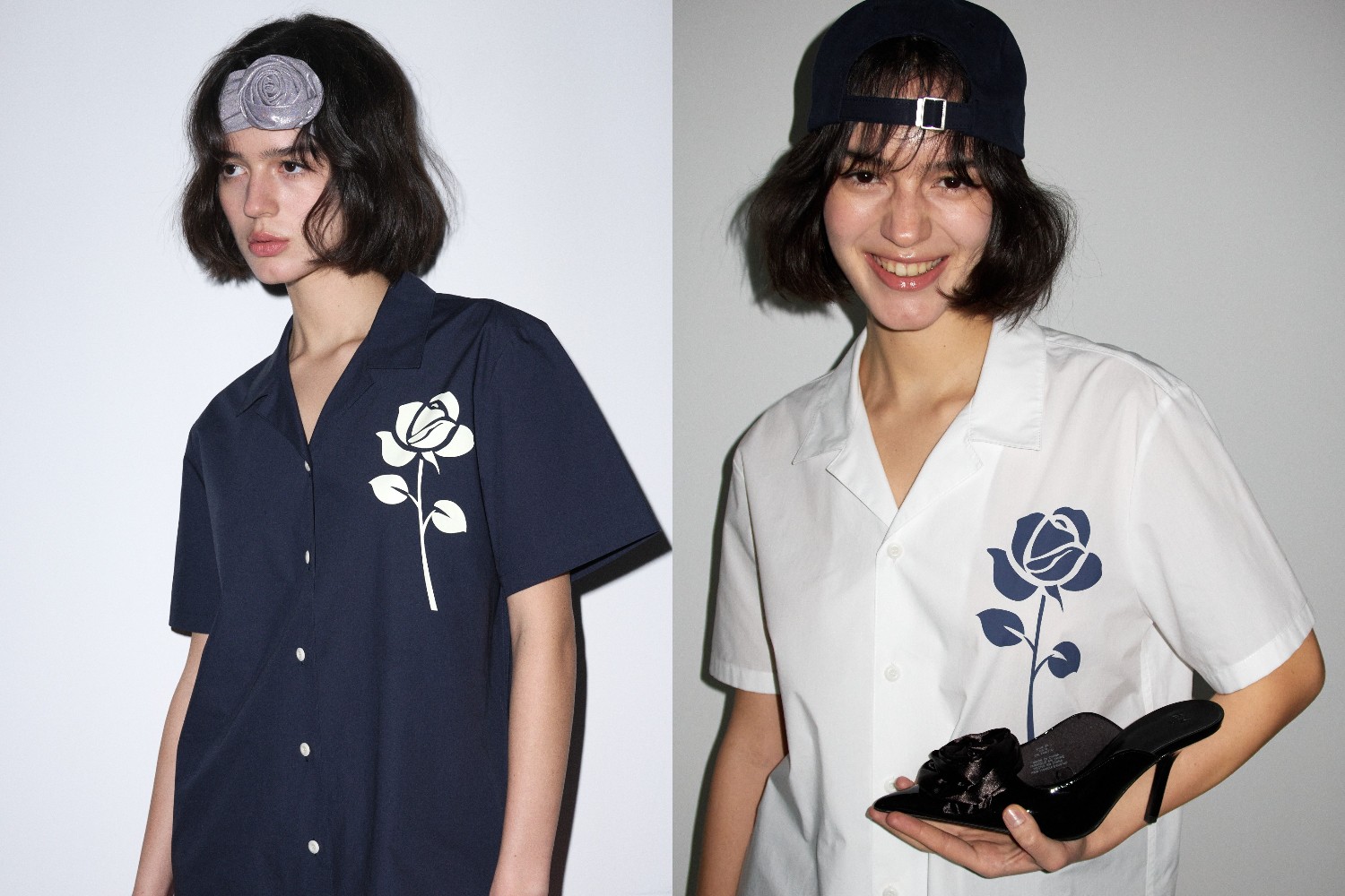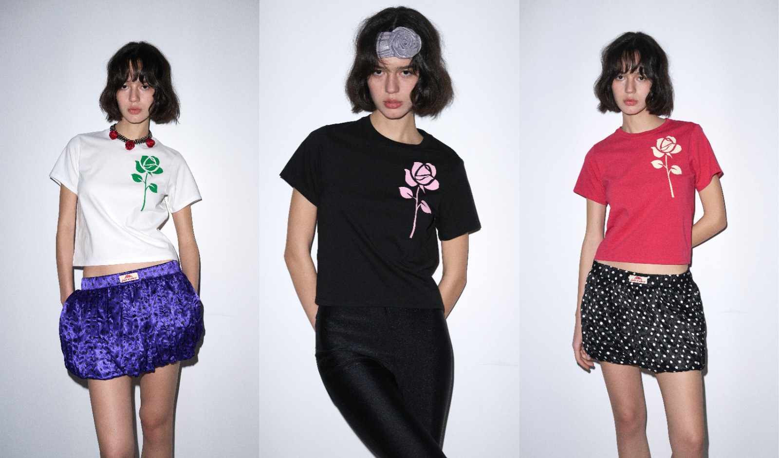 設(shè)計師運用玫瑰花圖案,創(chuàng)造出兩個截然不同的款式,從而營造多元穿搭的風(fēng)格。設(shè)計師將連根帶葉的玫瑰花分別注入T恤及恤衫系列,並將其圖案擺放於右上角位置,低調(diào)又不失時尚感。玫瑰花短款T恤系列合共有三種不同的配色,分別是粉紅色底色拼米黃色玫瑰、黑色底色拼粉紅色玫瑰及白色底色拼綠色玫瑰,瑰麗的玫瑰融入於夏日明亮繽紛的色彩,增添夏日活潑氣息,為整體造型注入生氣。