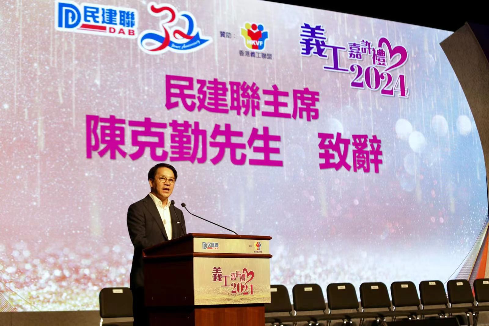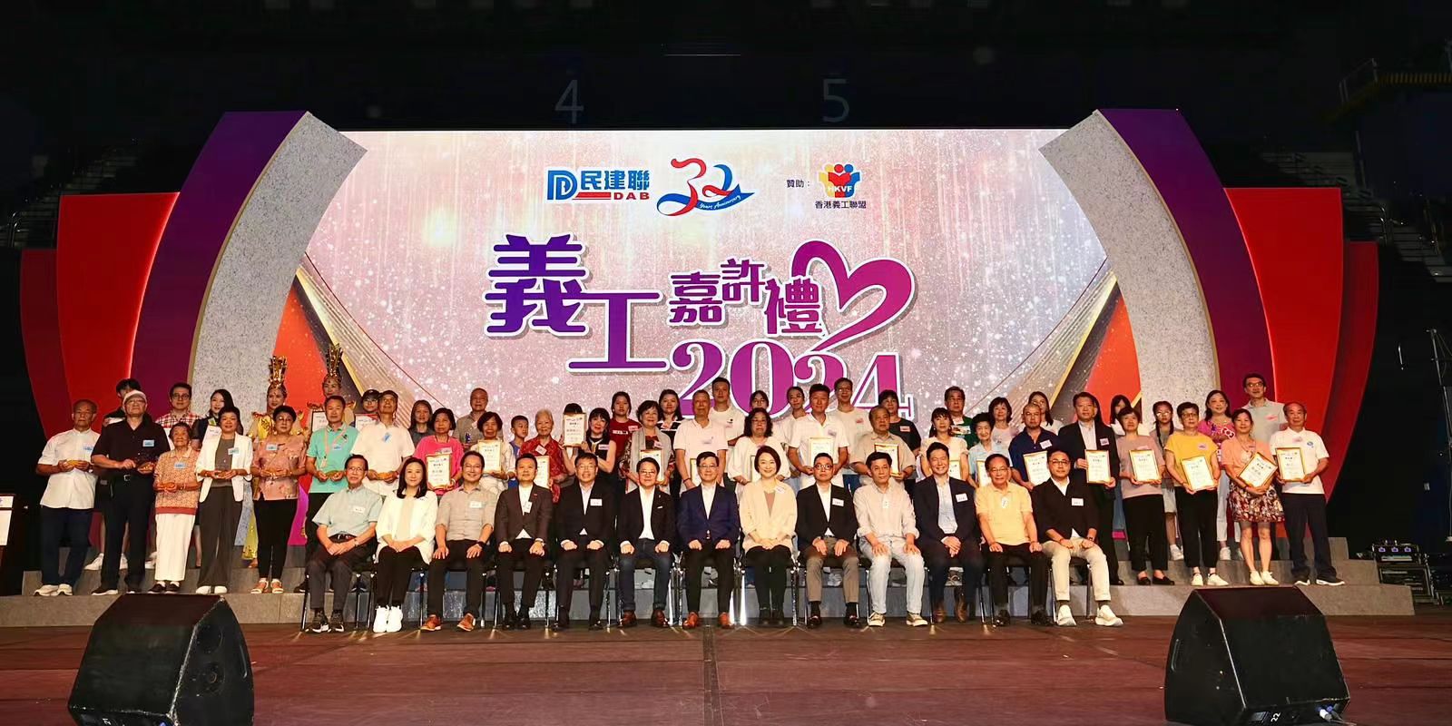 民建聯(lián)今日舉行義工嘉許禮2024,邀得行政長官李家超、中聯(lián)辦副主任何靖、中聯(lián)辦社工部副部長周和、香港義工聯(lián)盟常務(wù)副主席吳聯(lián)喜擔(dān)任主禮嘉賓。