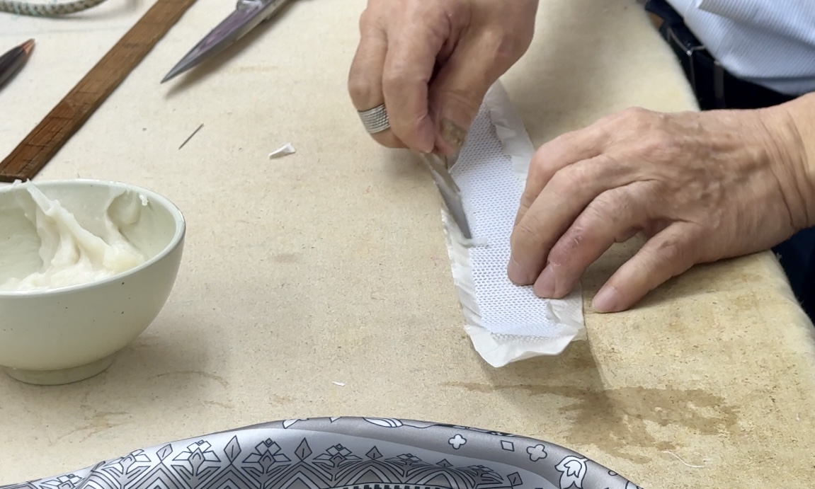 現(xiàn)用的製衣工具已經(jīng)難在市場上買到,如用來增加布料硬度的漿糊,都是由殷師傅親自製作。