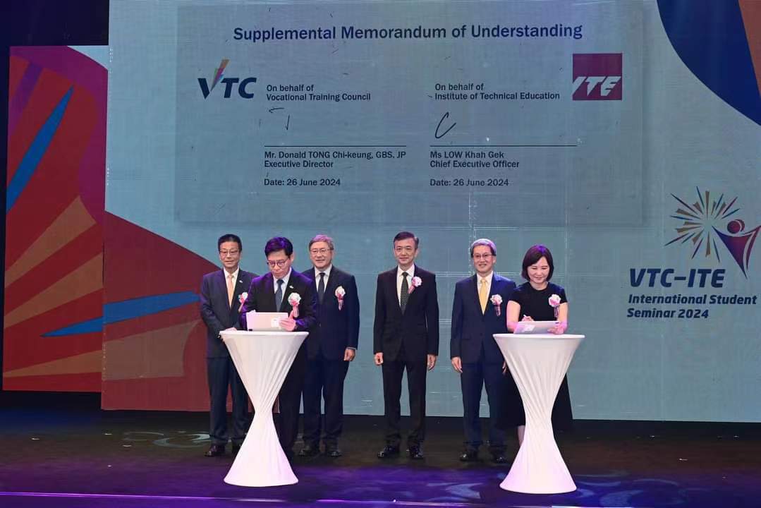 職業(yè)訓(xùn)練局(VTC)與新加坡工藝教育學(xué)院(Institute of Technical Education,簡稱ITE),由今日(26日)起一連三日在將軍澳的香港知專設(shè)計學(xué)院舉行「VTC-ITE國際學(xué)生研討會2024」。政務(wù)司副長卓永興於會上表示,會用好香港的教育優(yōu)勢幫助青年發(fā)展,並建設(shè)教育和人才高地,為高質(zhì)量發(fā)展提供人力資本。