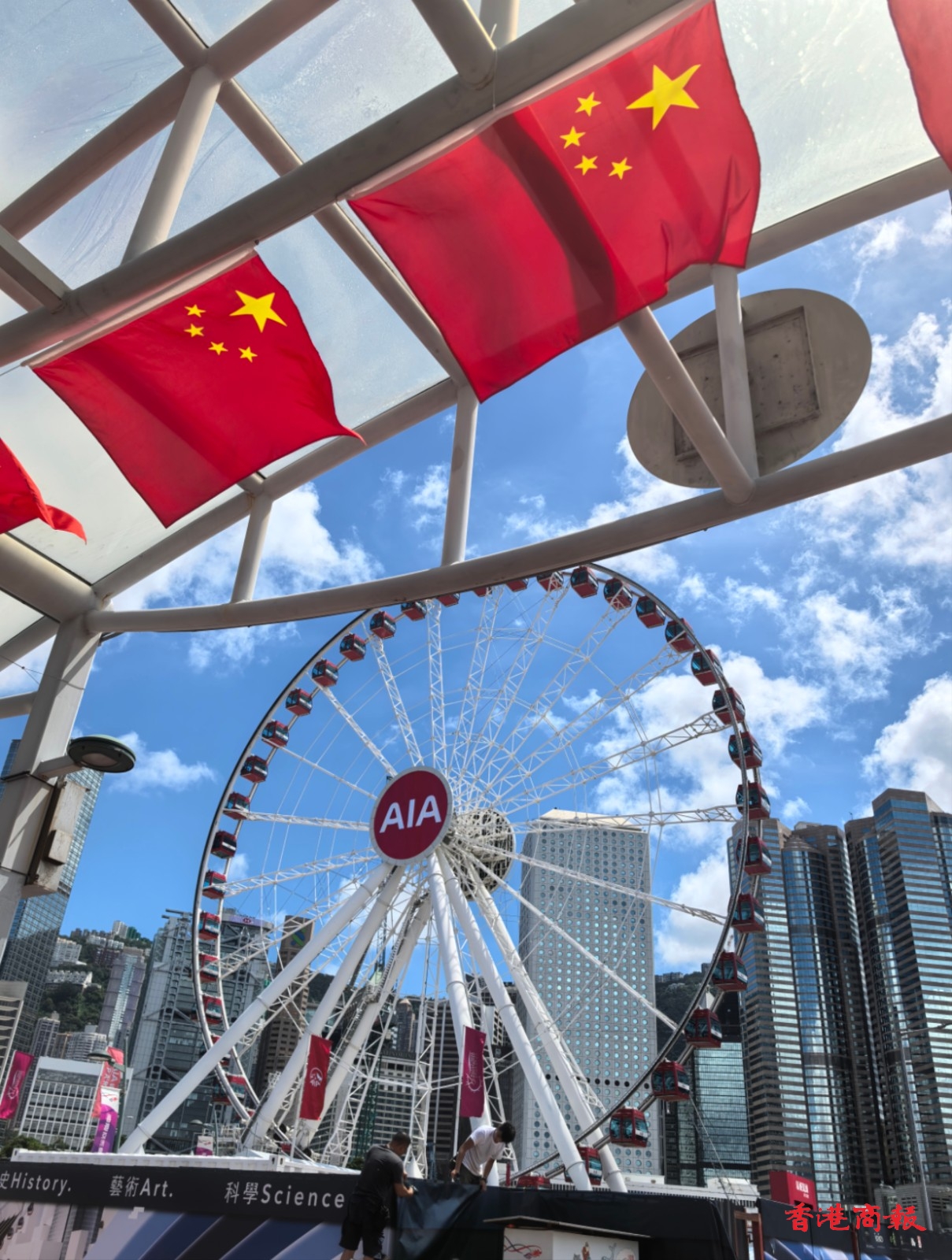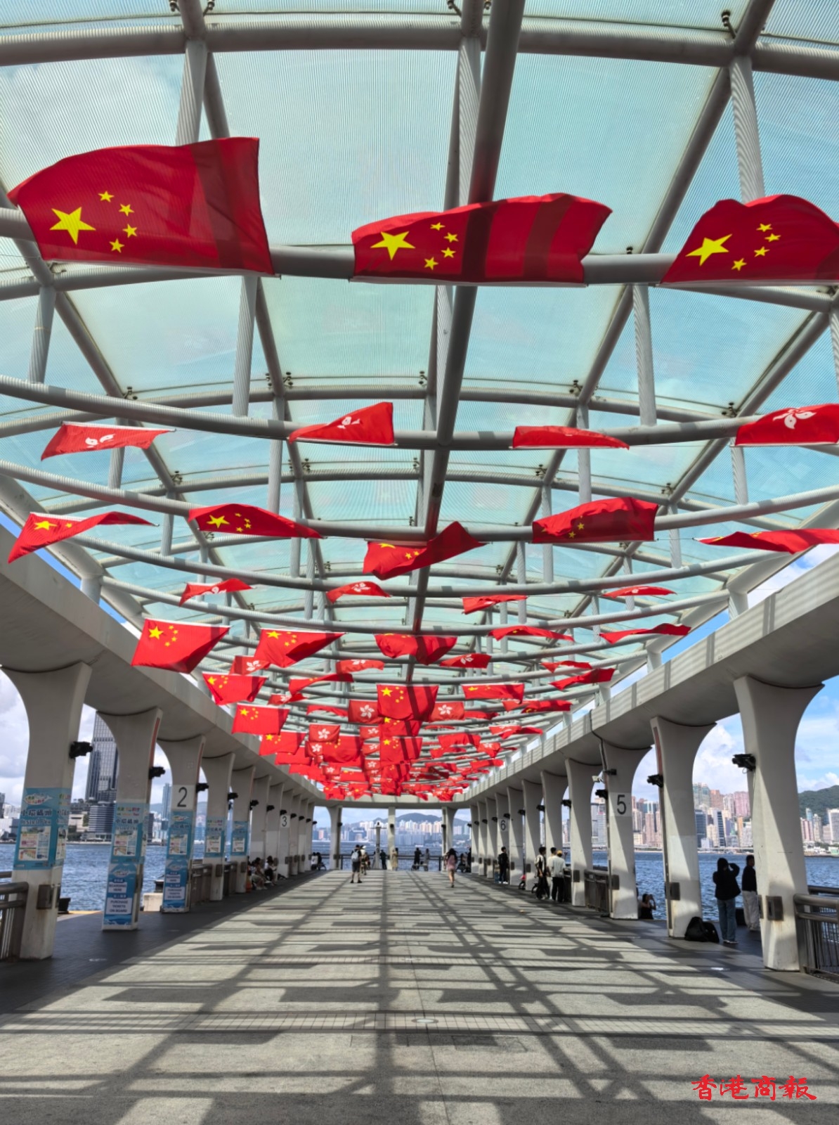 距離7月1日香港回歸祖國(guó)27周年還有4天,香港的大街小巷被五星紅旗與香港區(qū)旗裝點(diǎn)得格外醒目。五星紅旗在微風(fēng)的吹拂下輕輕搖曳,鮮豔的紅色與金色的五星在陽(yáng)光下熠熠生輝。