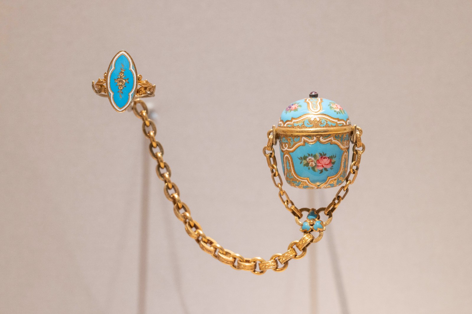 法國服裝的設計對世界文化交流產生的影響也可在展品中窺見一斑。在18世紀的法國,中國絲網或中國風尚的布料深受歡迎。展品中一件18世紀男性貴族所穿的室內外套,採用法國絲綢面料,紋樣卻受中國絲綢啟發(fā),可見中法之間的貿易往來和文化交流。19世紀初古希臘及羅馬風格盛行,令浮雕和凹雕吊墜成為時尚的日間飾物,部分女性羊絨披肩的設計風格也受到印度進口產品的影響。