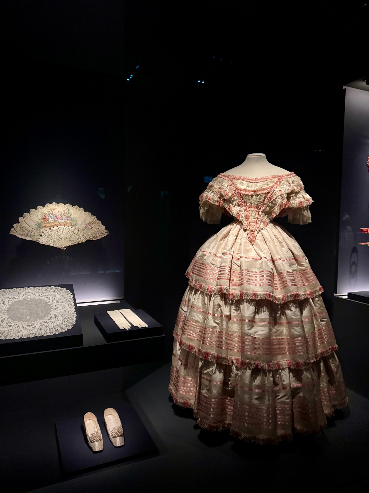 現(xiàn)今流行的時裝秀與高訂時裝的起源亦來自法國。展品中的一件華麗晚禮服出自「高級定制時裝之父」查理斯·弗雷德里克·沃斯之手,其設計布滿精美刺繡圖案,體現(xiàn)了沃斯設計才華和對細節(jié)的掌握。沃斯是真人模特兒時裝表演(如今的時裝秀)的先驅,並首創(chuàng)在服裝上縫製品牌標籤的做法。他的創(chuàng)新改變了十九世紀中後期法國時裝展示的風格和形式,亦為時尚界帶來革命性變革。沃斯的時裝店位於巴黎和平路,至今該地區(qū)仍是法國奢侈品的中心。