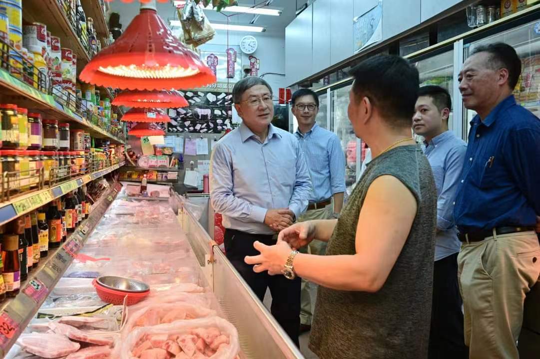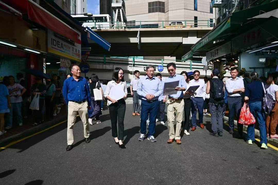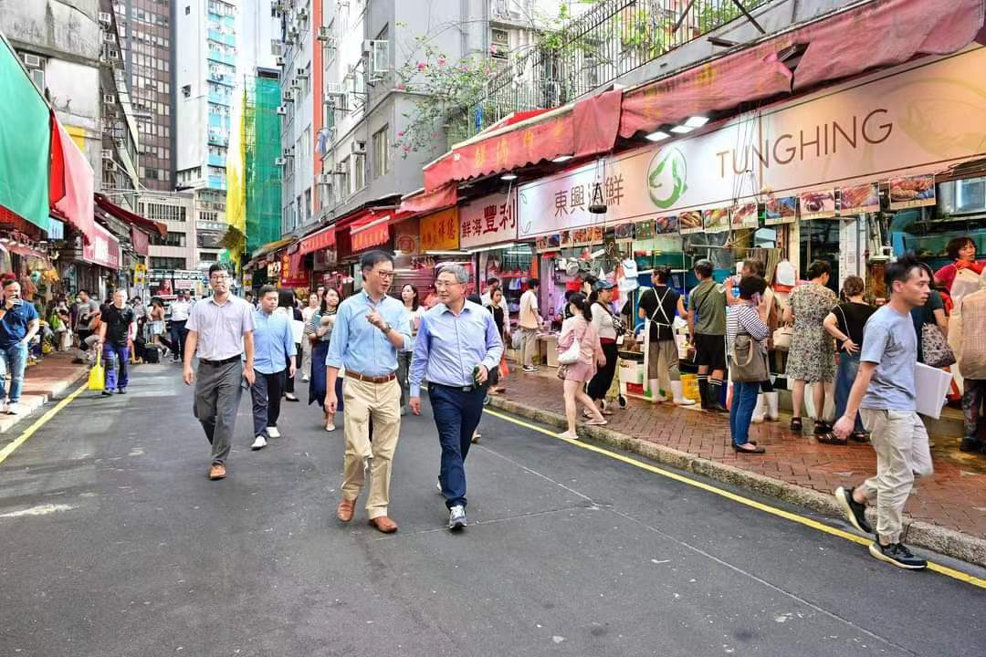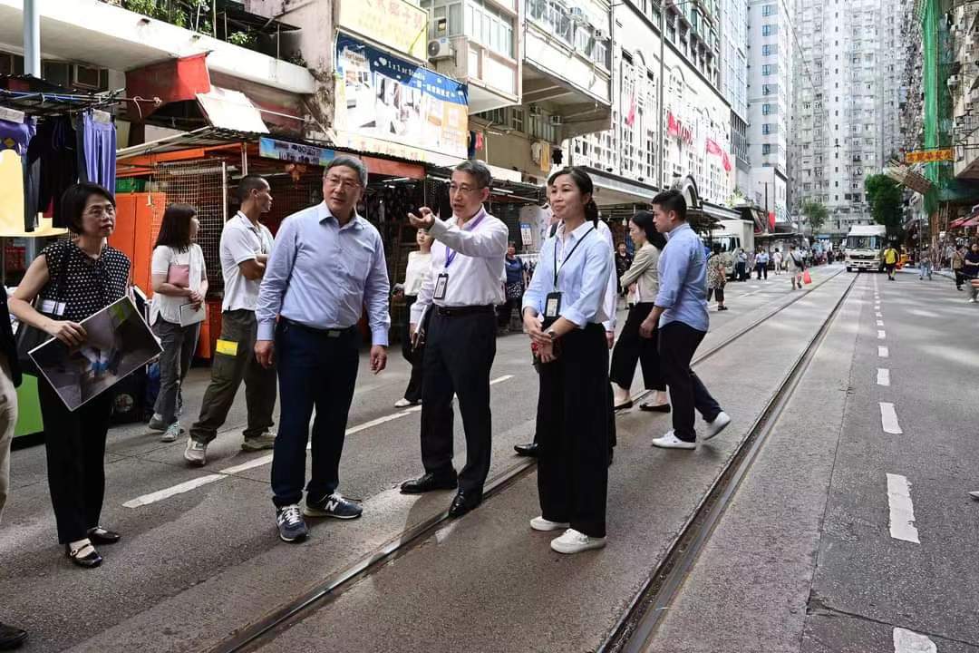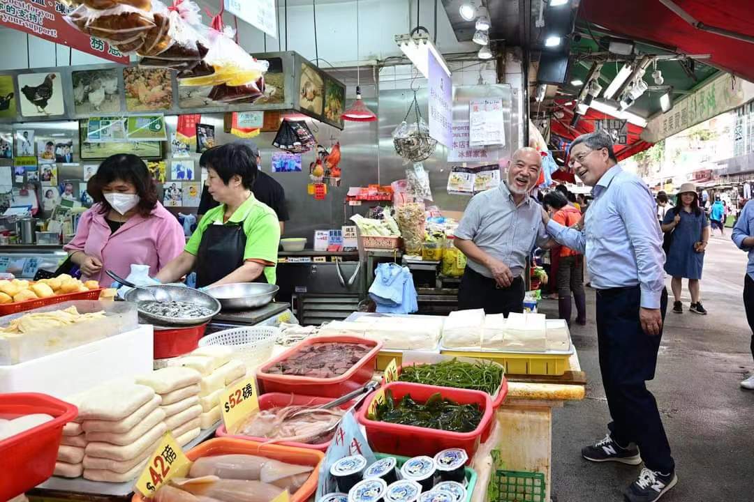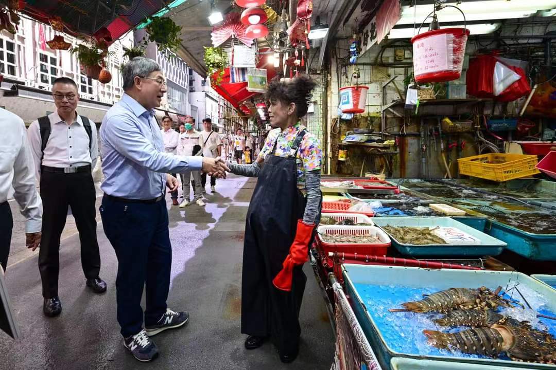 卓永興先到北角春秧街,由東區(qū)民政事務(wù)專員陳尚文陪同,沿路細(xì)看改善環(huán)境衞生和整頓店舖阻街的成效。他說,該處的店舖曾長期在店外堆放大量貨物雜物,令行人舉步為艱;經(jīng)「地區(qū)事項統(tǒng)籌工作組」協(xié)調(diào),以及食環(huán)署及警方的聯(lián)合執(zhí)法行動後,陋習(xí)已得到根治。路政署去年10月在該處鋪了新的防滑鋼沙,令行人路更安全、平順、亮麗。豬肉店東主陳先生說,重鋪的道路方便長者出行,街坊都很歡迎。鮮魚店東主好姐也盛讚環(huán)境衞生有顯著改善,吸引了不少附近酒店的遊客在街上打卡和參觀她的店面。