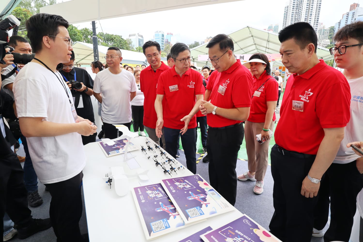 除展覽外,慶委會還在場內(nèi)設(shè)置兩個特別打卡區(qū),一組是「古代文 創(chuàng)玩具」打卡裝置,以中華優(yōu)秀傳統(tǒng)文化中的古代遊戲及玩具為題材,吸引青少年與長輩共玩、共樂、共慶,另一組為香港回歸祖國 27周年打卡裝置,以紫荊花為標(biāo)誌,營造節(jié)日浪漫氣氛,寓意香港與祖國緊密相連。