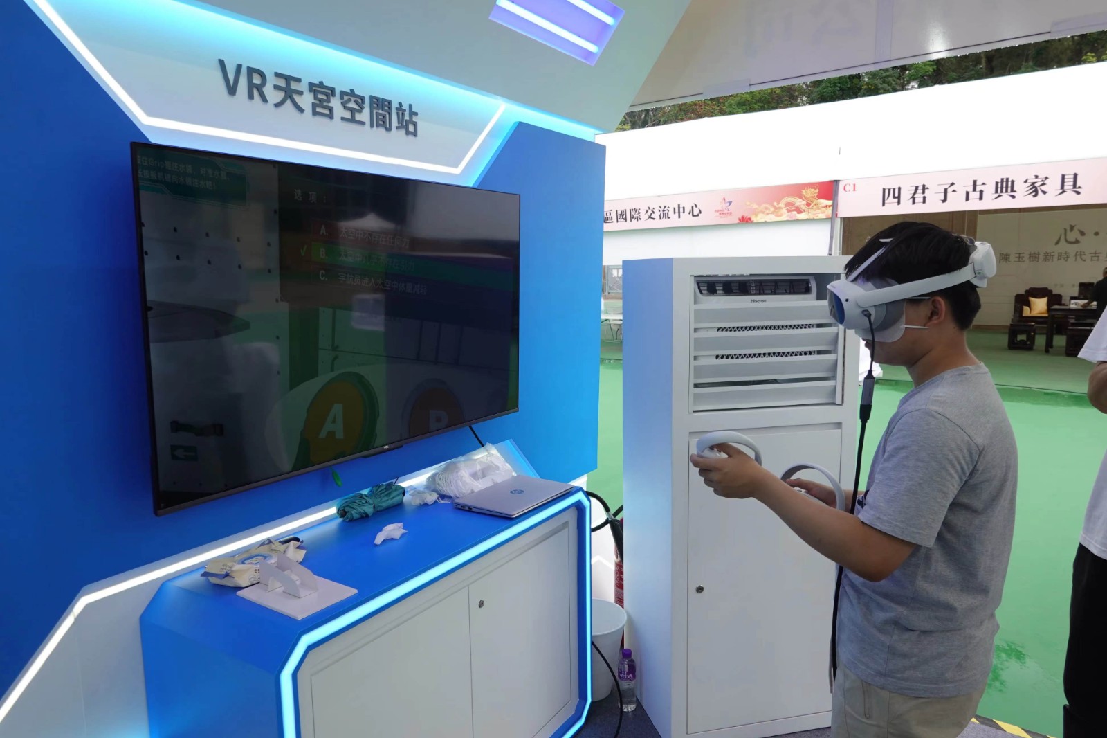 他又介紹,攤位主題是「創(chuàng)科與港」。展區(qū)設(shè)置遊戲互動(dòng),逐夢(mèng)藍(lán)天工作坊融合航天航空主題的 STEAM 教育計(jì) 劃、手拋飛機(jī)製作套裝?,F(xiàn)場(chǎng)有專業(yè)導(dǎo)師指導(dǎo)參與者進(jìn)行飛機(jī)設(shè)計(jì)、知識(shí)測(cè)試和技巧操作,完成製作後,參與者可於展區(qū)指定區(qū)域試飛自製飛機(jī)。遊戲忠實(shí)還原真實(shí)戰(zhàn)機(jī)如殲-15、殲-31等型號(hào),採(cǎi)用3D高品質(zhì)模型,讓玩家身臨其境,現(xiàn)場(chǎng)設(shè)有專用飛行搖桿設(shè)備,供參觀者即時(shí)體驗(yàn)遊戲互動(dòng)。