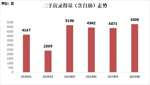 深圳市房地產(chǎn)中介協(xié)會(huì)(以下簡(jiǎn)稱深房中協(xié))統(tǒng)計(jì)數(shù)據(jù)顯示,2024年6月全市二手房錄得(錄得量係指以二手房買賣合同發(fā)起時(shí)間為口徑統(tǒng)計(jì)的數(shù)據(jù),並非最終成交過戶套數(shù))5309套,環(huán)比增長(zhǎng)9.0%,同比增長(zhǎng)66.3%。上半年在持續(xù)不斷地樓市優(yōu)化政策加持下,深圳二手房市場(chǎng)在春節(jié)假期返工後呈現(xiàn)良好走勢(shì),其中3月和6月二手房交易量突破5000套水平,6月二手房交易量創(chuàng)近40個(gè)月新高。