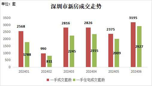 2024年6月全市新房共成交3195套,環(huán)比增長(zhǎng)34.5%,同比下降24.3%,其中新房住宅成交2927套,環(huán)比增長(zhǎng)45.7%,同比下降4.0%。