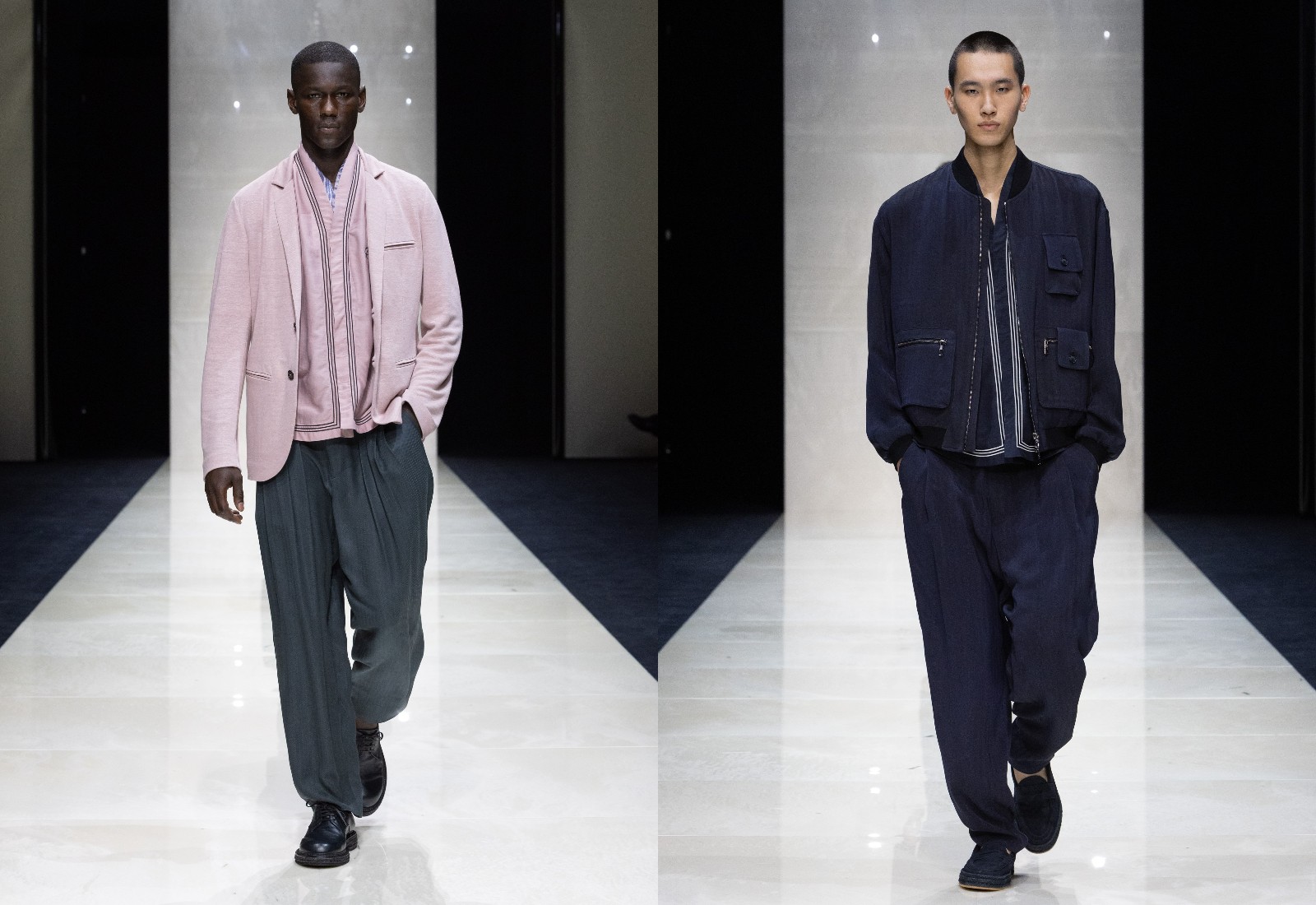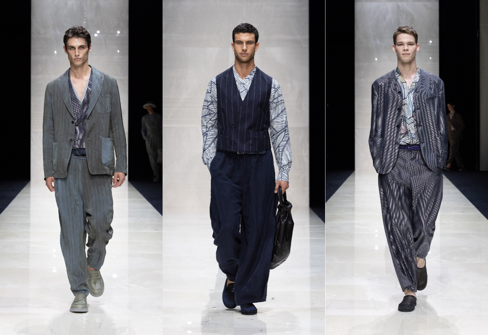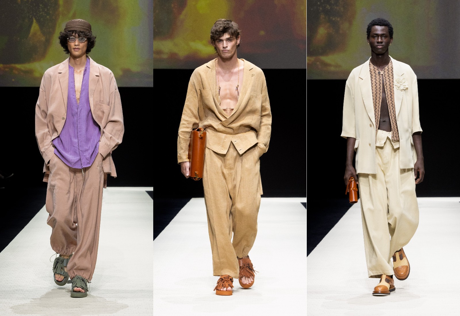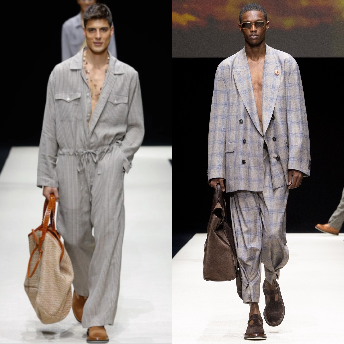 Giorgio Armani的秀場(chǎng)以熱帶地區(qū)的美景和悠閒生活方式為靈感,融合優(yōu)雅格調(diào)與輕鬆愜意的海島氣息。這是 Armani 執(zhí)掌品牌 90 年以來(lái)的最後一場(chǎng)男裝秀,在掌聲和敬意中,與品牌男裝設(shè)計(jì)辦公室負(fù)責(zé)人 Leo Dell’Orco 和 Gianluca Dell’Orco 共同謝幕。春夏系列重塑了 20 世紀(jì) 80 年代寬鬆尖領(lǐng)襯衫的經(jīng)典造型,採(cǎi)用格子和斜紋等元素,展現(xiàn)出經(jīng)典與現(xiàn)代的結(jié)合。