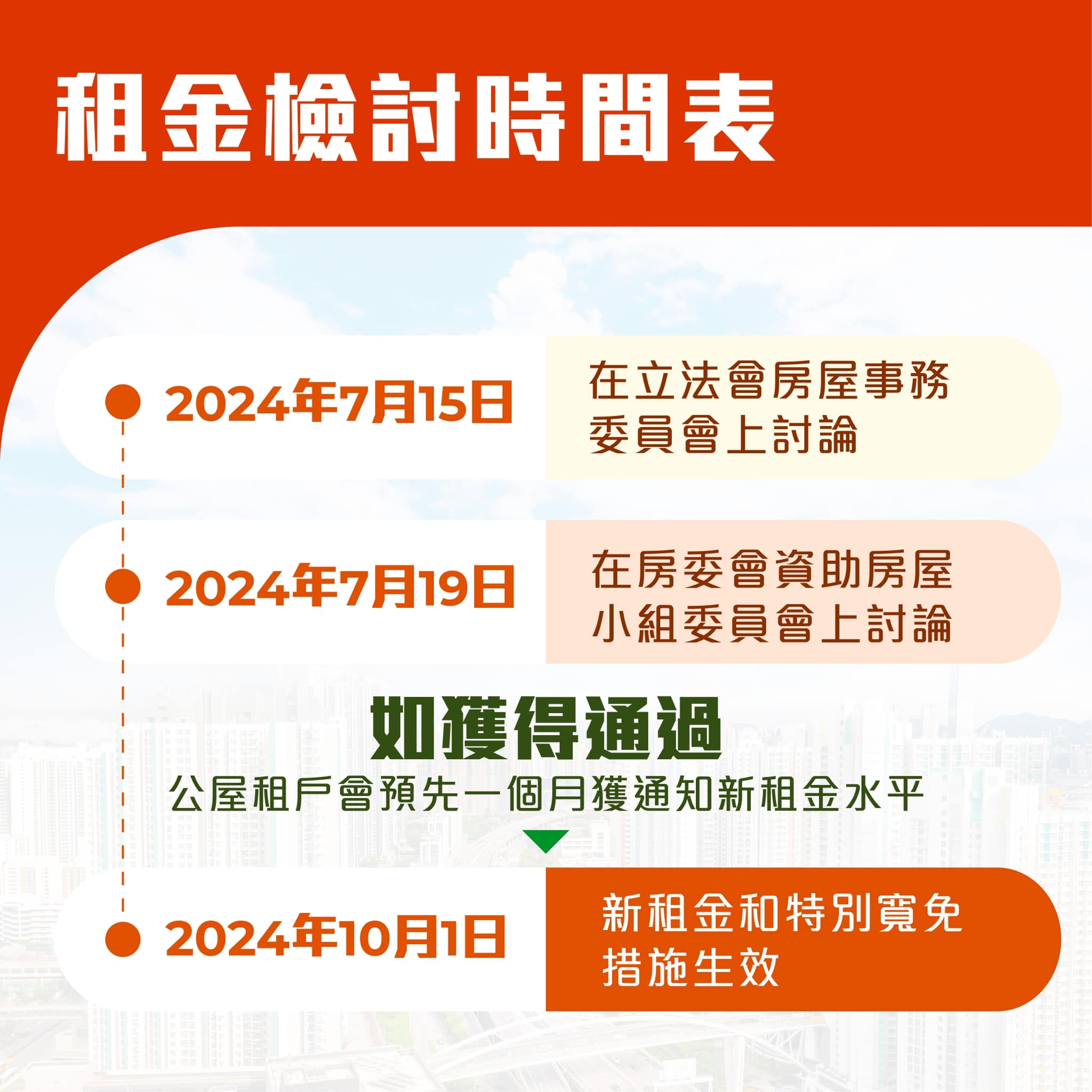 公屋租金每?jī)赡隀z討一次,房屋局今日(8日)向立法會(huì)房屋事務(wù)委員會(huì)提交2024年公屋租金檢討文件,建議今年公屋租金加10%,10月1日起實(shí)施,每月租金上調(diào)金額介乎49元至572元,平均增加約230元。除富戶外,其他公屋租戶獲豁免首3個(gè)月租金加幅,即明年1月起正式實(shí)施新租金。
