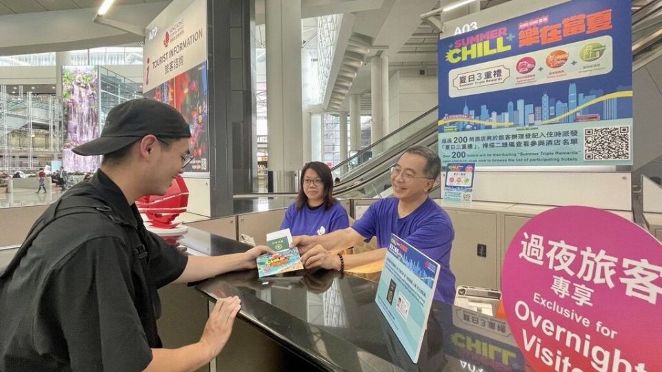 旅發(fā)局即日起免費(fèi)派發(fā)予訪港過(guò)夜旅客50萬(wàn)份「夏日三重禮」。(旅發(fā)局圖片)