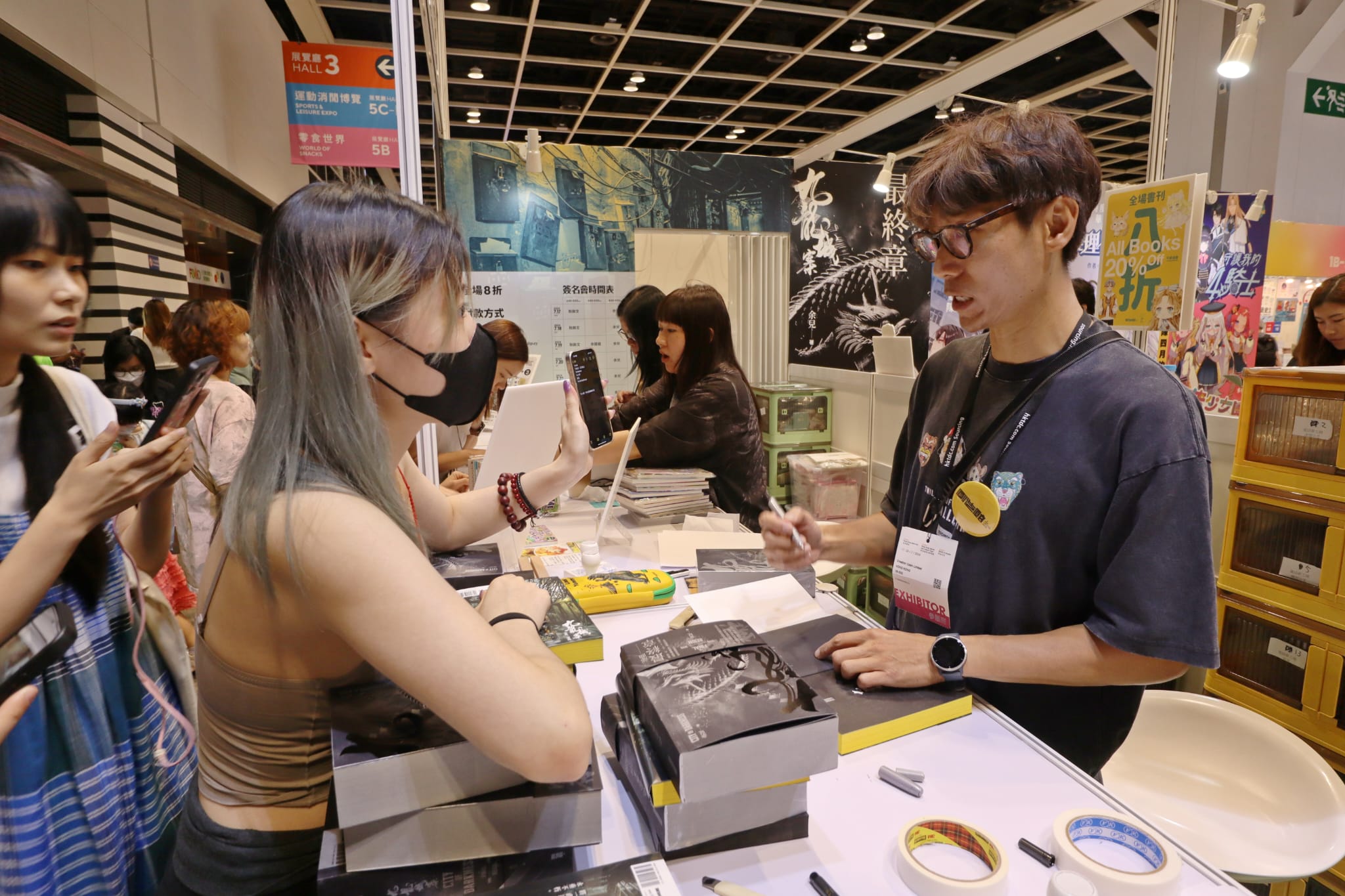 小呂的朋友說,剛好來香港,想感受不同地區(qū)展會情況,自己是第一次來書展,發(fā)現(xiàn)兩地文字系統(tǒng)與書寫方向不一樣。兩人知道今年書展主題是影視,黃金時代的電影會較感興趣,小呂比較喜歡王家衞。