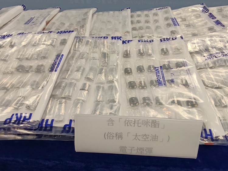 警方將軍澳警區(qū)人員前日(23日)在康城路一帶進(jìn)行反毒品行動(dòng),截查2名男子並搜出100粒含有依托咪酯、俗稱「太空油」的電子煙彈,其後到該男子的單位搜查並發(fā)現(xiàn)215克粉狀依托咪酯、 687粒已製成含有依托咪酯的電子煙彈,以及製成電子煙彈的材料和工具,包括電磁爐、金屬鍋、電子磅、樽裝不同口味的香油和大量電子煙彈殼。