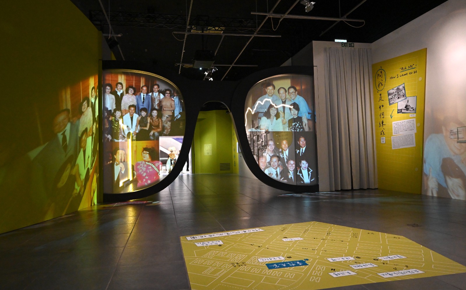 展廳入口處展示大型的黑框眼鏡,並播放黃霑生活照片,讓觀者深入認識一代才子。