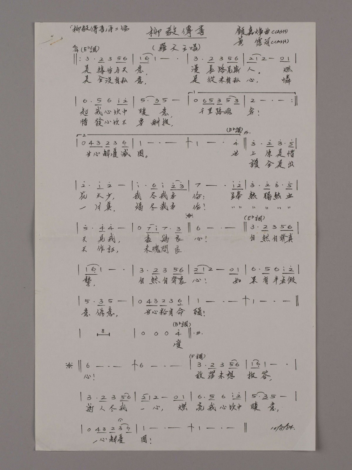 《柳毅傳書》劇本、歌詞手稿,1984年。