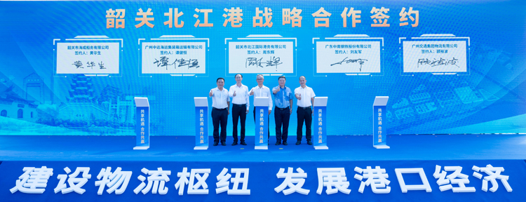 在當天的開港活動中,韶關(guān)市北江國際港務(wù)有限公司分別與廣州中遠海運集裝箱運輸有限公司、廣東中南鋼鐵股份有限公司、韶關(guān)市海成船務(wù)有限公司、廣州交通集團物流有限公司完成戰(zhàn)略合作簽約。各方將發(fā)揮各自企業(yè)優(yōu)勢,攜手將韶關(guān)北江港打造成為以港強產(chǎn)、以港促聯(lián),港口服務(wù)區(qū)域經(jīng)濟發(fā)展的助推器。