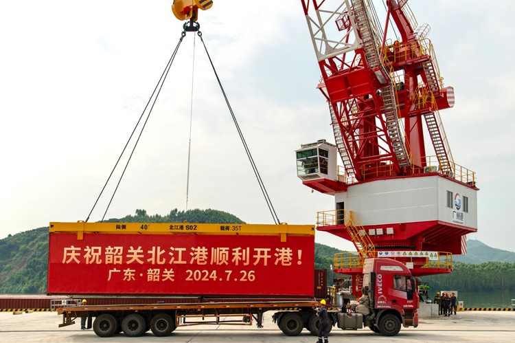 7月26日上午,由廣州港攜手韶關(guān)建設(shè)最大綜合性公共港口--韶關(guān)北江港區(qū)白土作業(yè)區(qū)項目(韶關(guān)北江港)正式開港。當日,「藤縣海順222」輪、「海成306」輪的集裝箱、鋼材裝卸作業(yè)正式展開。建設(shè)韶關(guān)北江港也是廣州、韶關(guān)奮進推動廣東「百千萬工程」,促進廣東綜合交通運輸體系建設(shè)的重要舉措,投產(chǎn)後將發(fā)揮港口樞紐功能,推動韶關(guān)融入粵港澳大灣區(qū)世界級港口群,促進韶關(guān)、廣州兩地產(chǎn)業(yè)融合、協(xié)同發(fā)展。