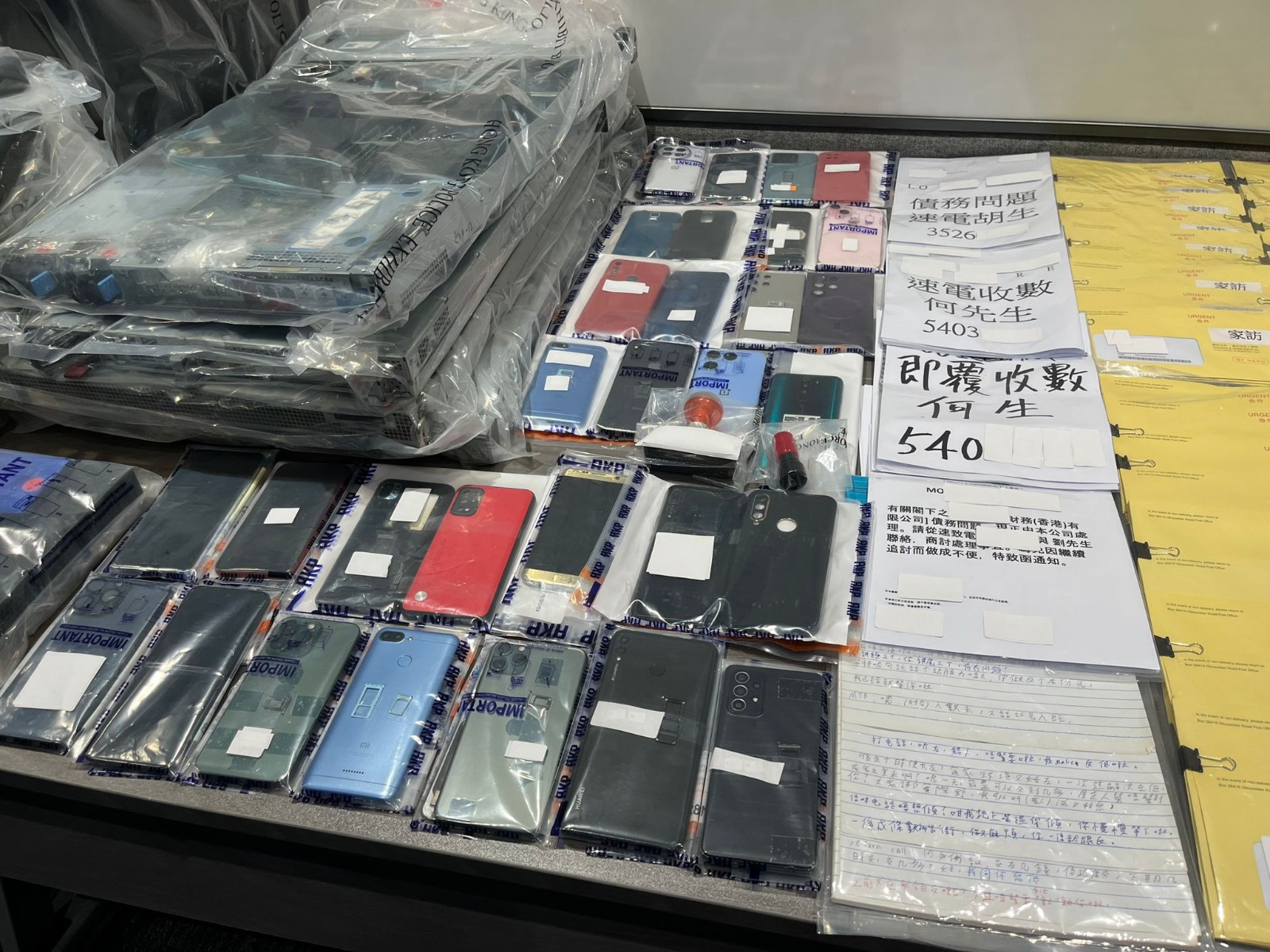 東九龍總區(qū)重案組總督察劉浩德今日(26日)表示,經(jīng)深入調(diào)查及情報分析,在22至25日展開行動,搜查一間以不當(dāng)手段追債的收數(shù)公司,拘捕32男8女(16至67歲),報稱任職文員、地盤工、售貨員、保險經(jīng)紀(jì)及無業(yè),部分人有黑社會背景,涉嫌串謀刑事恐嚇、串謀無牌借貸、串謀以過高利率放債、洗黑錢及串謀刑事毀壞5項罪名,搜出數(shù)千名欠債人個人資料。調(diào)查顯示,被捕各人分別參與放高利貸、組織淋紅油等非法活動,以及處理放高利貸相關(guān)的犯罪得益,金額逾3000萬元。