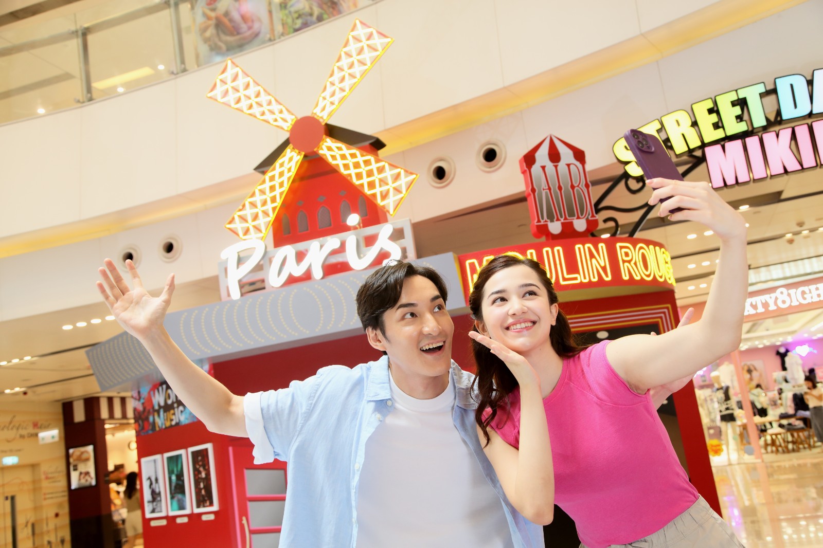 今屆奧運於巴黎舉行,商場中庭特設(shè)多個巴黎地標場景,內(nèi)有多個互動遊戲等沉浸式體驗,恍如置身體壇盛事大舞臺。最矚目的是4.5米高紅磨坊及彩虹拱門燈牌,紅磨坊作為巴黎著名景點加入了燈光效果,更加突出。一旁的彩虹拱門燈牌把紅磨坊與Hip Hop塗鴉牆連接,象徵把街舞聯(lián)繫世界。Hip Hop塗鴉牆大膽又富創(chuàng)意,盡顯街頭風格。牆上設(shè)置了「街舞大挑戰(zhàn)」體驗遊戲,可跟隨屏幕上的街舞動作盡展舞技。4米高的巴黎鐵塔加上閃爍燈效,鐵塔裝置四周布滿色彩繽紛的心鎖牆裝飾,靈感源自於昔日塞納河上的心鎖橋。露天咖啡廳和甜點是巴黎特色風光,場內(nèi)的法式風情咖啡廳是瑪莉工房期間限定店,店內(nèi)提供口感醇厚、味道清新的限定焦糖布甸檸檬戚風蛋糕,商場會員可以HK$198購買(原價4吋HK$268)。