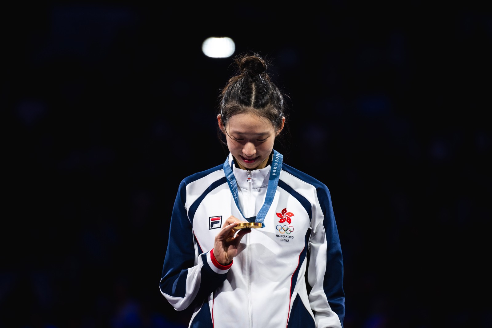 中國香港代表團(tuán)劍擊選手江旻憓(Vivian)在女子重劍個(gè)人賽決賽,克服1比7落後的劣勢,最終「決一劍」以13比12反勝法國選手馬洛勇奪金牌的同時(shí),亦為港隊(duì)贏得今屆巴黎奧運(yùn)首面金牌。