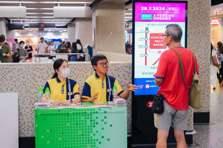 港鐵表示全日動(dòng)員超過1000名人員在相關(guān)車站及巴士站協(xié)助乘客,亦於相關(guān)車站增加超過2500個(gè)乘客資訊及指示牌提醒乘客。(港鐵圖片)