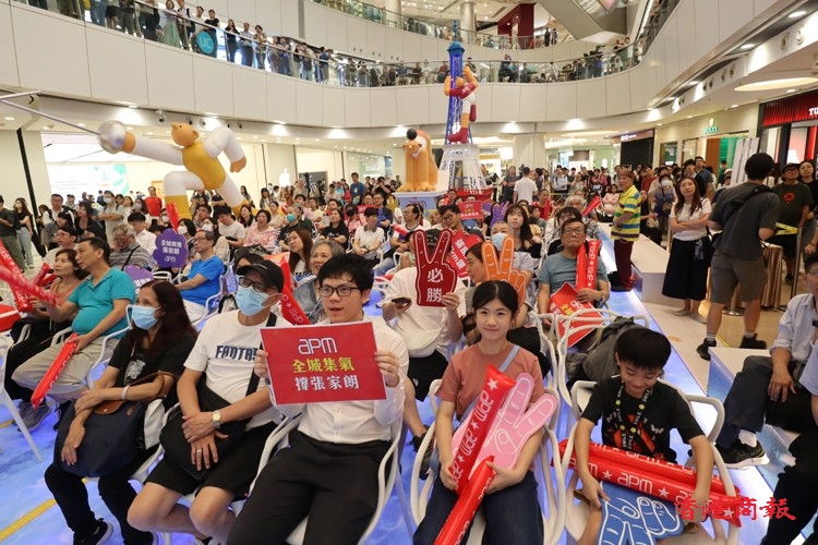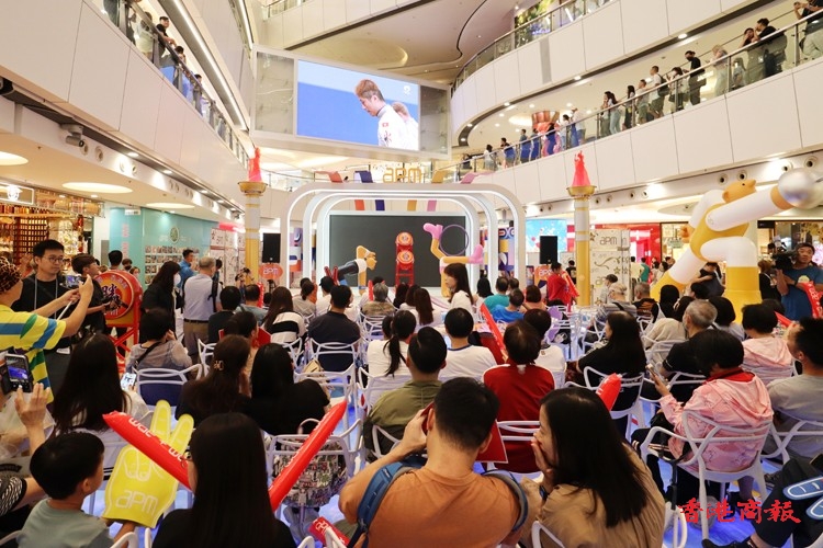 大批市民在商場支持張家朗比賽(馮瀚文攝)