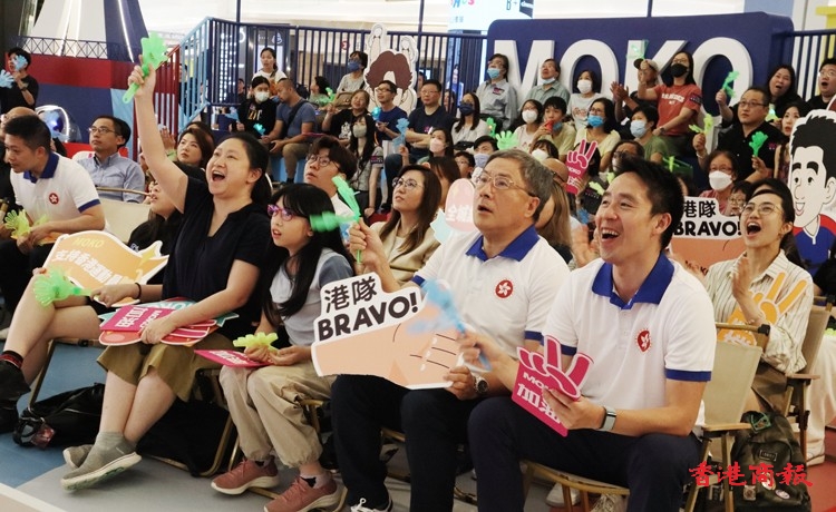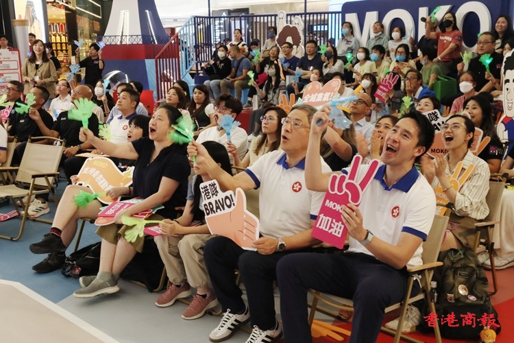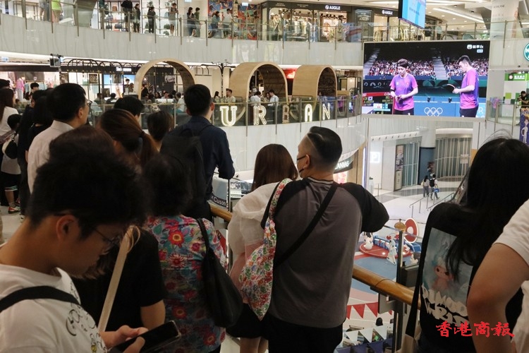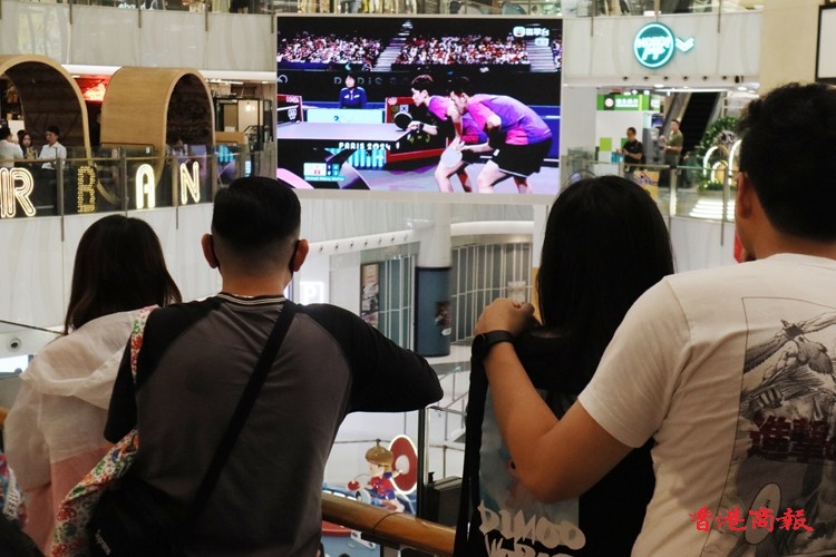 卓永興表示,今晚有不少市民去到商場(chǎng)觀看賽事直播,支持港乒和國(guó)乒,現(xiàn)場(chǎng)氣氛十分高漲。坐在他旁邊的小朋友一家和後面的幾位年輕女球迷很是投入,不時(shí)高呼「加油」,為香港隊(duì)和國(guó)家隊(duì)吶喊助威。