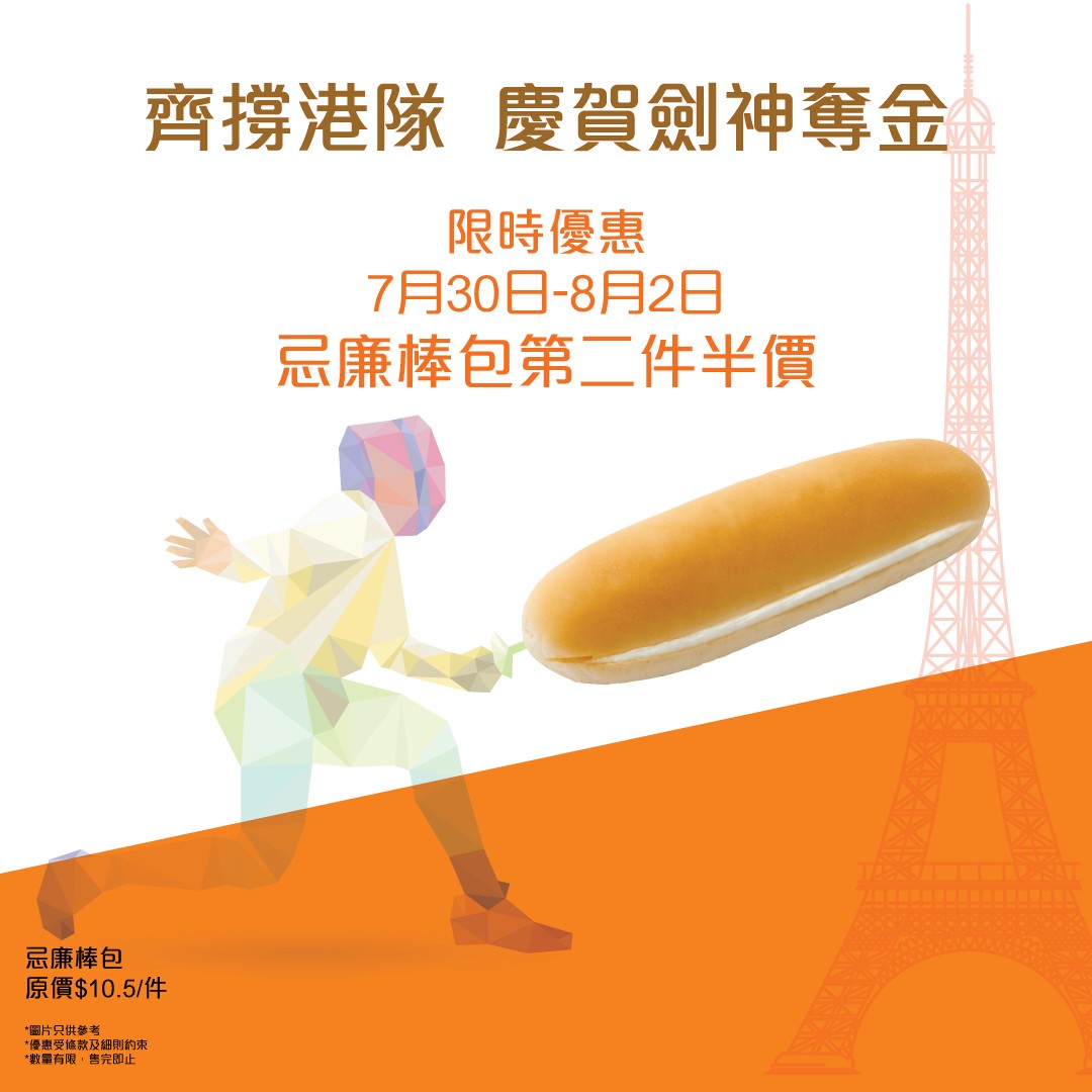 珍寶吞拿魚包第二件半價(jià)/忌廉棒包第二件半價(jià),優(yōu)惠期由7月30日至8月2日。