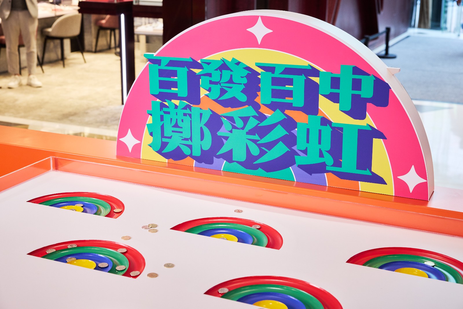 同時,商場也帶來原創(chuàng)「百發(fā)百中擲彩虹」遊戲,隨手將硬幣擲向彩虹板,即使擲中空白位置都可中獎;「100%??成功遊戲」使用「特製法寶」於限時內(nèi)無上限地撈起代幣,撈起的代幣可即時兌換相同面額的K Dollar。