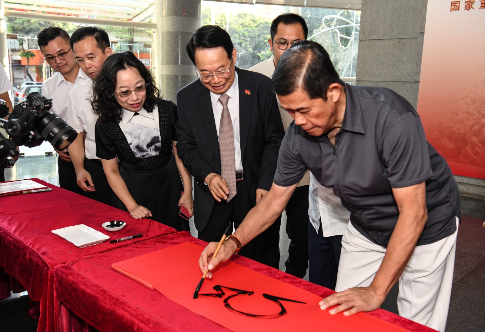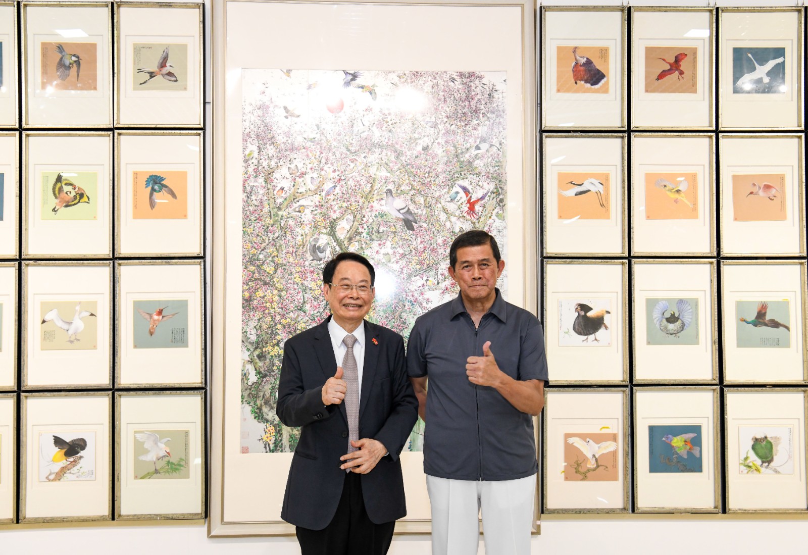 蕭暉榮在十多年前,於汕頭創(chuàng)建的藝苑文化廣場(chǎng)已成為當(dāng)?shù)刂型馕幕涣髦翱?,在文化公共外交上起到橋樑作用,以傳播中?guó)聲音、講好香港和潮汕僑鄉(xiāng)故事為己任。功·塔帕朗西參觀機(jī)構(gòu)內(nèi)的「蕭暉榮藝術(shù)館」、「蕭暉榮雕塑館」,及「廣東省嶺東美術(shù)館」三樓主展廳的「東方墨彩 時(shí)代宏圖——蕭暉榮教授一帶一路藝術(shù)展」,他對(duì)同齡的蕭暉榮的成就和藝術(shù)造詣讚嘆不已,認(rèn)為蕭教授的作品捕捉了大自然的美好,傳遞了世界和平的願(yuàn)景。功·塔帕朗西強(qiáng)調(diào),蕭教授成就斐然,接受訪問(wèn)時(shí)說(shuō):「很高興能夠觀看蕭先生這批不凡的作品,這些畫(huà)充滿了鮮花與和平?;ɑ艽砹舜笞匀?,顯示了和平,觀看時(shí)我感到非常平靜?!?/p>