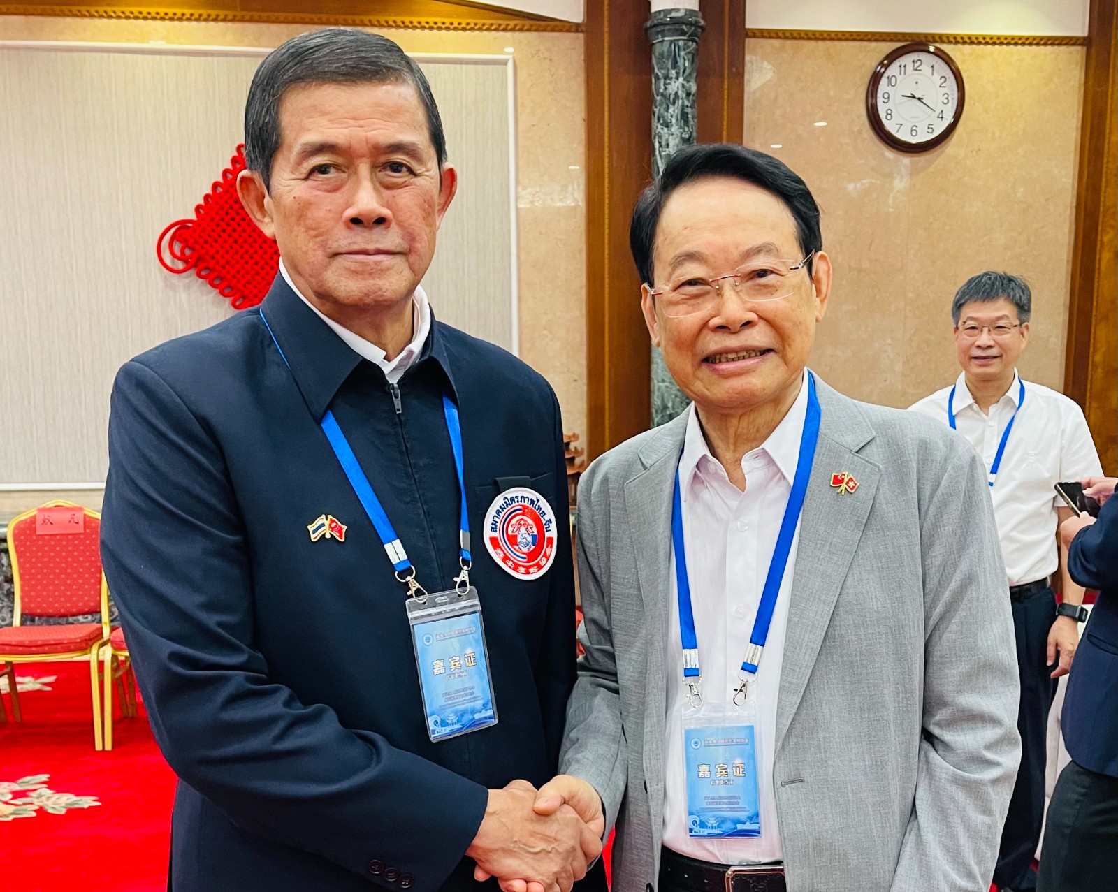 泰中友好協(xié)會(huì)會(huì)長(zhǎng)、泰國(guó)前副總理功·塔帕朗西(左)與藝術(shù)家蕭暉榮(右)。