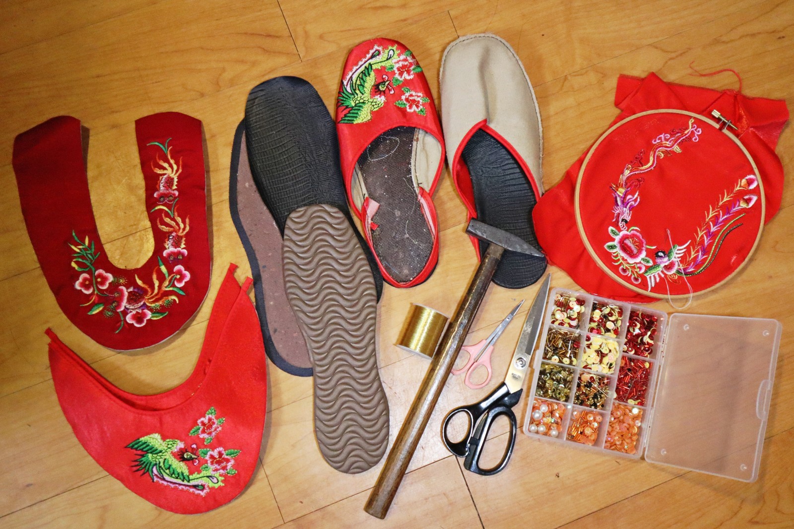 製作繡花鞋的部分工具。
