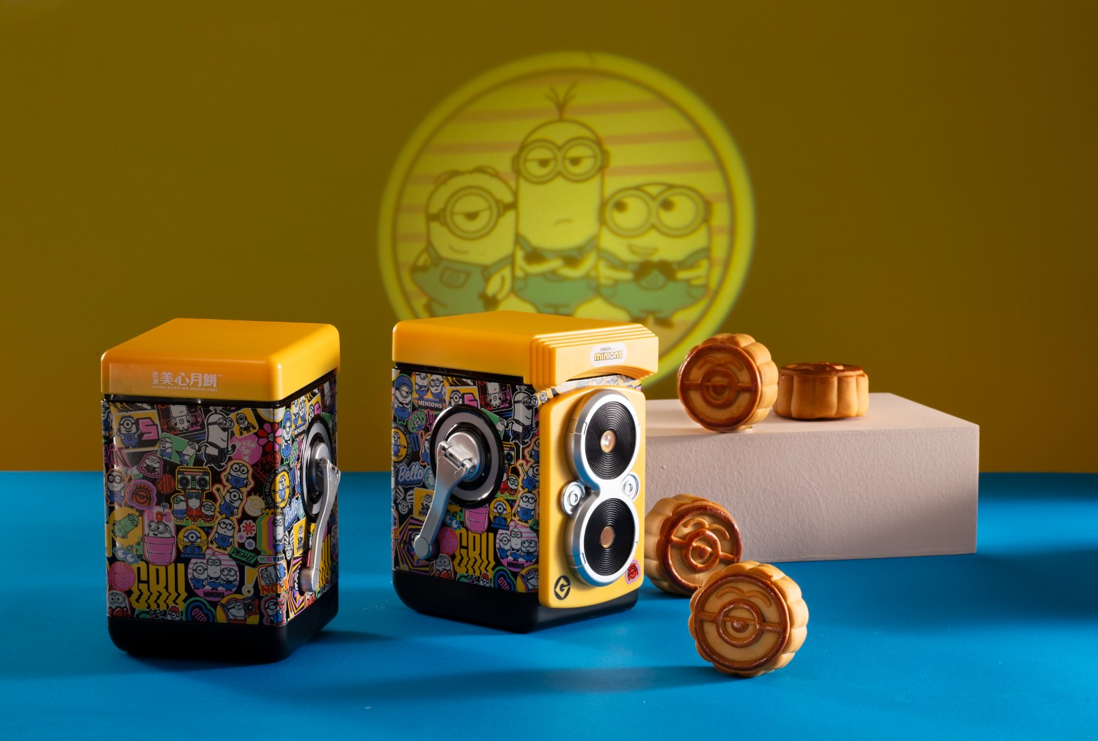 喜歡傳統(tǒng)月餅又追求健康生活的人士,可留意品牌另一新產(chǎn)品「低糖蛋黃蓮蓉月餅」,清香幼滑的白蓮蓉糖分低於5%,再配上原粒鹹蛋黃,口味傳統(tǒng)且輕盈。榴槤愛好者不可錯過的「榴槤軟心月餅」,選用馬來西亞榴槤的原熟果肉,味道香濃,口感幼滑富層次,墨綠色加上凹凸紋的榴槤圖案新包裝,增添了高級感。品牌今年再度與「迷你兵團」合作,推出以復(fù)古雙反相機為造型的月餅禮盒,盒內(nèi)盛載迷你兵造型的蛋黃蓮蓉月餅?;顫娒热さ拿阅惚巧?Bob、Dave、Kevin、Stuart等以不同造型呈現(xiàn)於禮盒上,打開和轉(zhuǎn)動盒身的燈掣、手柄,就可看見6個不同造型、藏於投影片的迷你兵團人物,趣味鬼馬。