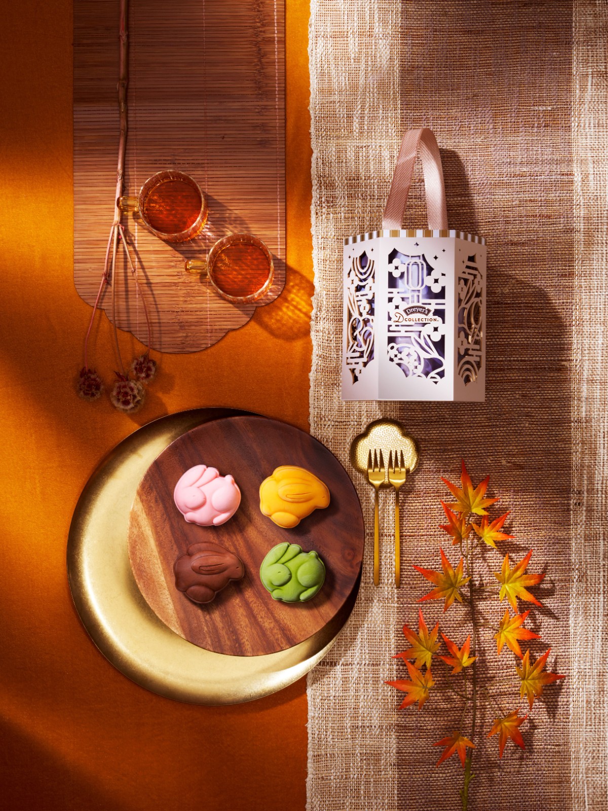 若家中有小朋友,可留意與SPY x FAMILY聯(lián)名推出的月餅禮盒。粉紅色皮紋設(shè)計的禮盒印上卡通角色安妮亞,以假亂真的書籍內(nèi)隱藏流心奶黃月餅。貓奴在賞月期間怎能缺少貓咪的陪伴?品牌今年再次邀請插畫家霜田有沙打造「喵·秋月禮盒」,禮盒備有花瓣粉色和水藍色兩色可選,餅?zāi)J强蓯鄣呢埲馇蛟煨土餍哪厅S及十勝紅豆麻糬月餅,定能俘虜貓奴的心。即日起,於分店購買任何3盒月餅, 或購買任何兩盒月餅再加HK$50,可獲印有月亮及花瓣的可愛貓貓旅行收納套裝。