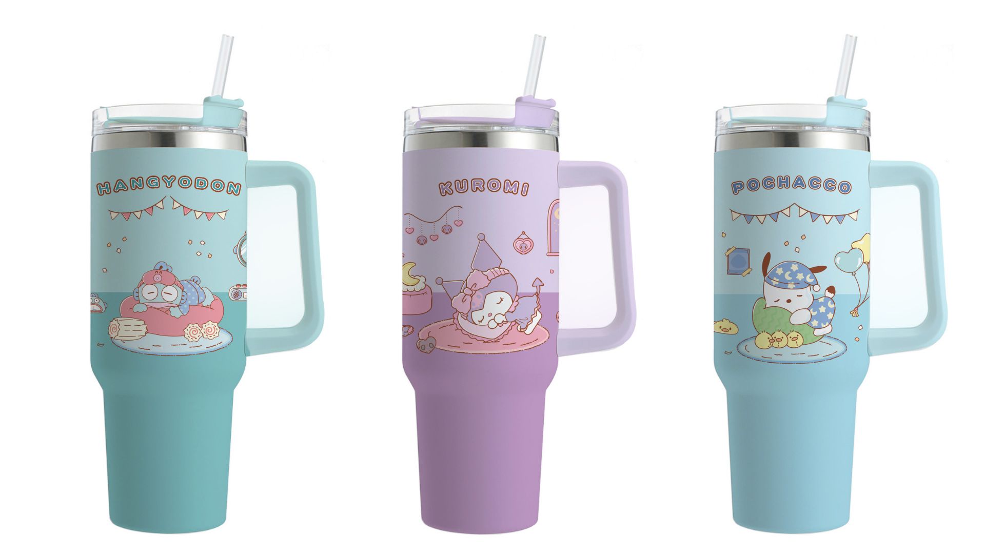 不鏽鋼杯有多款SANRIO角色圖案選擇,包括水怪(Hangyodon)、可羅米 (Kuromi)及PC狗(Pochacco)。