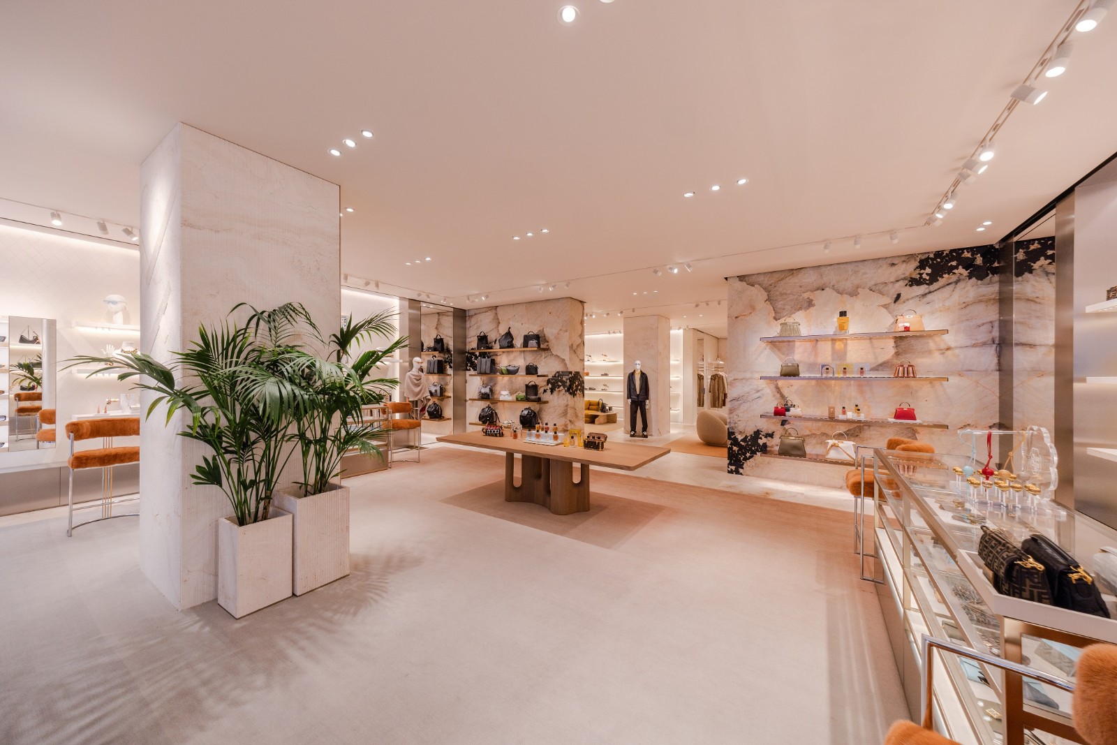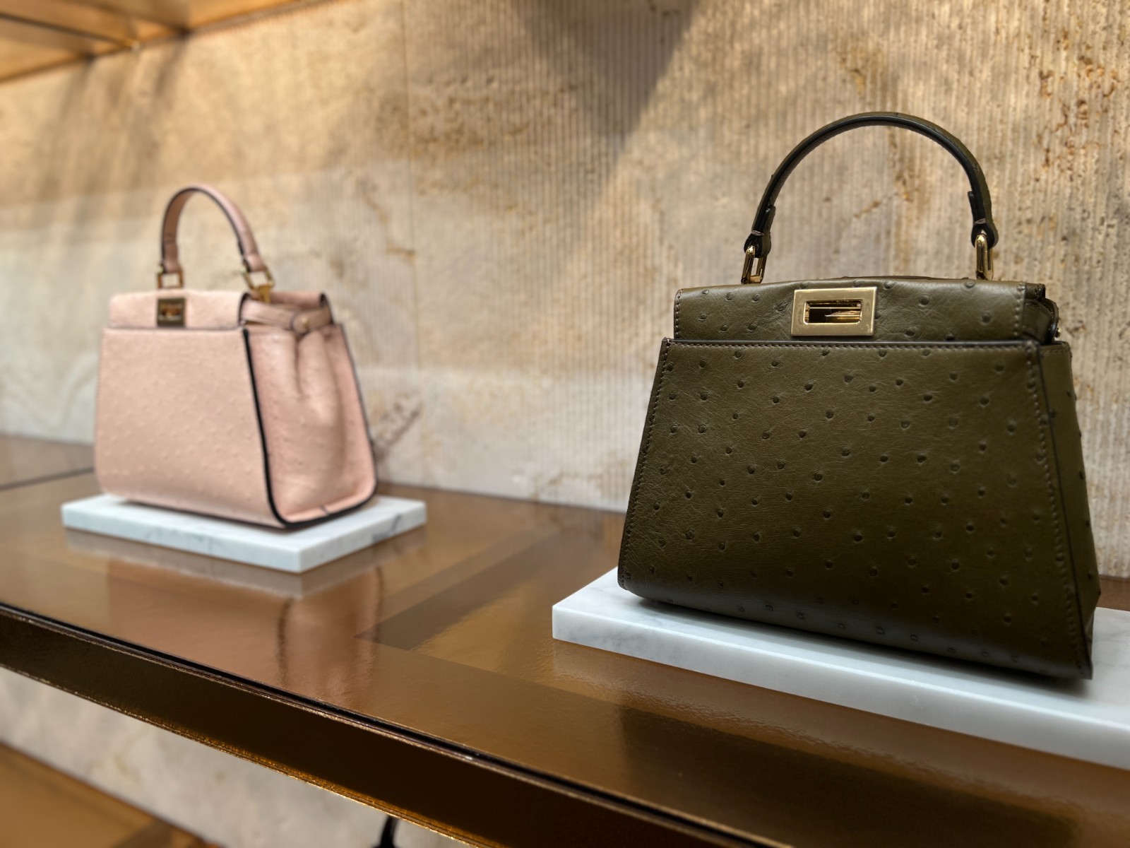 入口設(shè)有兩面以巴塔哥尼亞大理石製成、琥珀色手工紋理玻璃作點(diǎn)綴的牆身。裝潢布置挑選了設(shè)計(jì)師家具,如Christoph Delcourt的胡桃木Nin桌子、Arda Yeniay的Gold Salem大理石Eternity邊桌,以及品牌Casa梳化與扶手椅,隱秘的貴賓室選用Golden Sky大理石及Casa家具。店內(nèi)同時(shí)展示了2024秋冬系列新品,如最新Peekaboo Soft手袋,以柔軟的Odalisque小牛皮製作,包身保持系列手袋原有梯形輪廓,同時(shí)增加了可靈活調(diào)整手柄等細(xì)節(jié),設(shè)計(jì)高雅摩登兼?zhèn)?;與Chupa Chups聯(lián)乘的棒棒糖收納包,造型趣致可愛,以柔軟的皮革製作,皮革縫線使用Selleria工藝技術(shù),可作手袋掛飾或項(xiàng)鏈。 (記者、部分圖片:Janice)