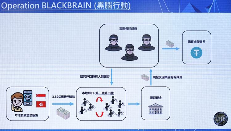 財(cái)富情報(bào)調(diào)查科在8月展開(kāi)代號(hào)「黑腦」行動(dòng),拘捕集團(tuán)首腦及骨幹成員等共7人,檢獲約30萬(wàn)元現(xiàn)金和逾60張銀行卡,成功阻止集團(tuán)從戶口轉(zhuǎn)移一部分犯罪得益。被拘捕其中5人已被落案控告「洗黑錢(qián)」罪。